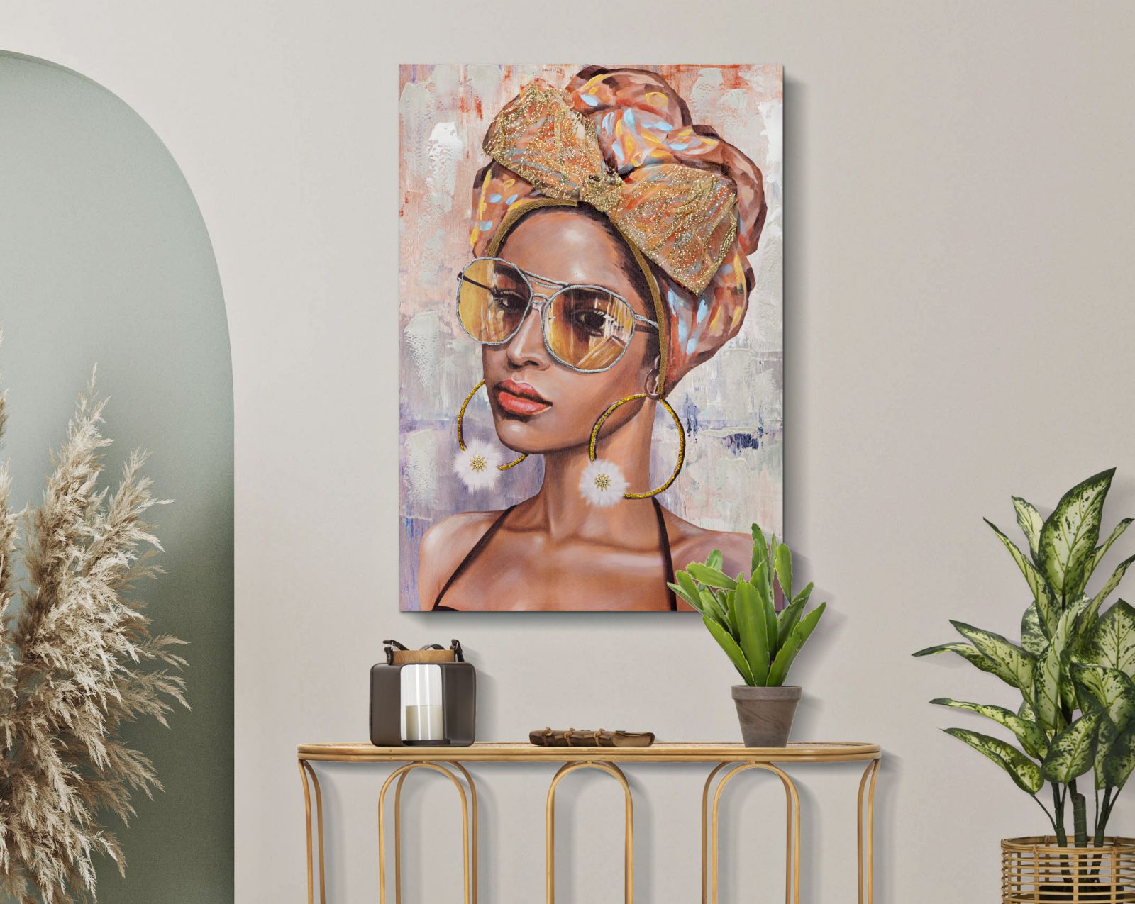 descrizione : BOHO CHICHPINE WOOD AND CANVASMULTICOLORDIPINTO SU TELA COMPLETO DI TELAIO IN LEGNO RAFFIGURANTE UN VOLTO DI DONNA CON COPRICAPO COMPLETO DI ELEGANTI APPLICAZIONI IN TESSUTO.