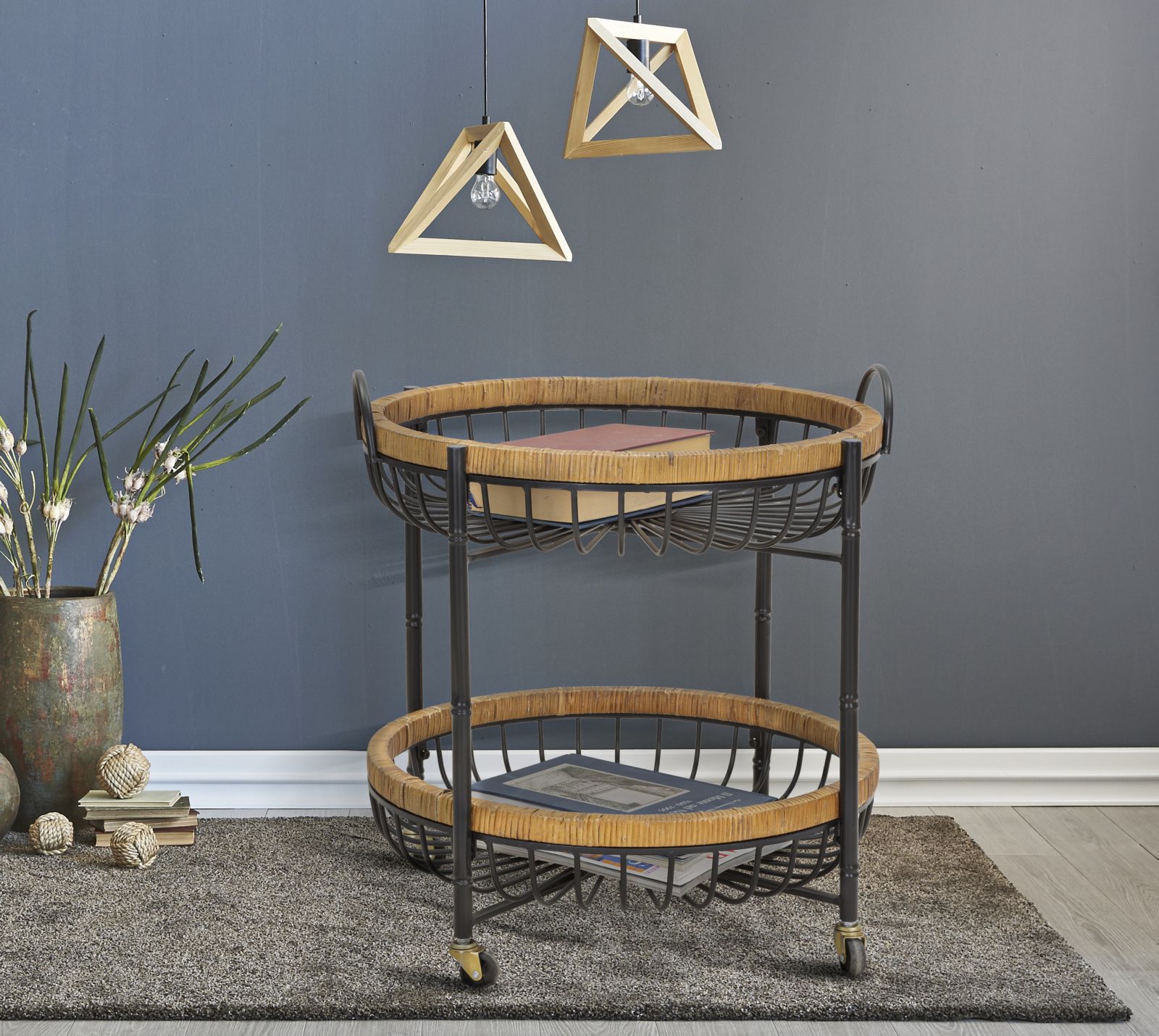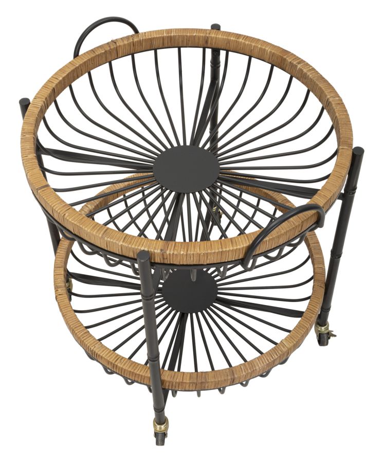 descrizione : BOHO CHICIRON AND RATTANMULTICOLORCARRELLO ROTONDO CON STRUTTURA IN METALLO NERO E 2 RIPIANI/CESTINI IN METALLO INCORNICIATI IN UN INTRECCIO DI RATTAN. PRATICHE ROTELLE NE FACILITANO LO SPOSTAMENTO. IL DESIGN SEMPLICE MA ACCATTIVANTE LO RENDE UN COMPLEMENTO PERFETTO PER OGNI TIPOLOGIA DI ARREDO.*space height between shelves cm 35