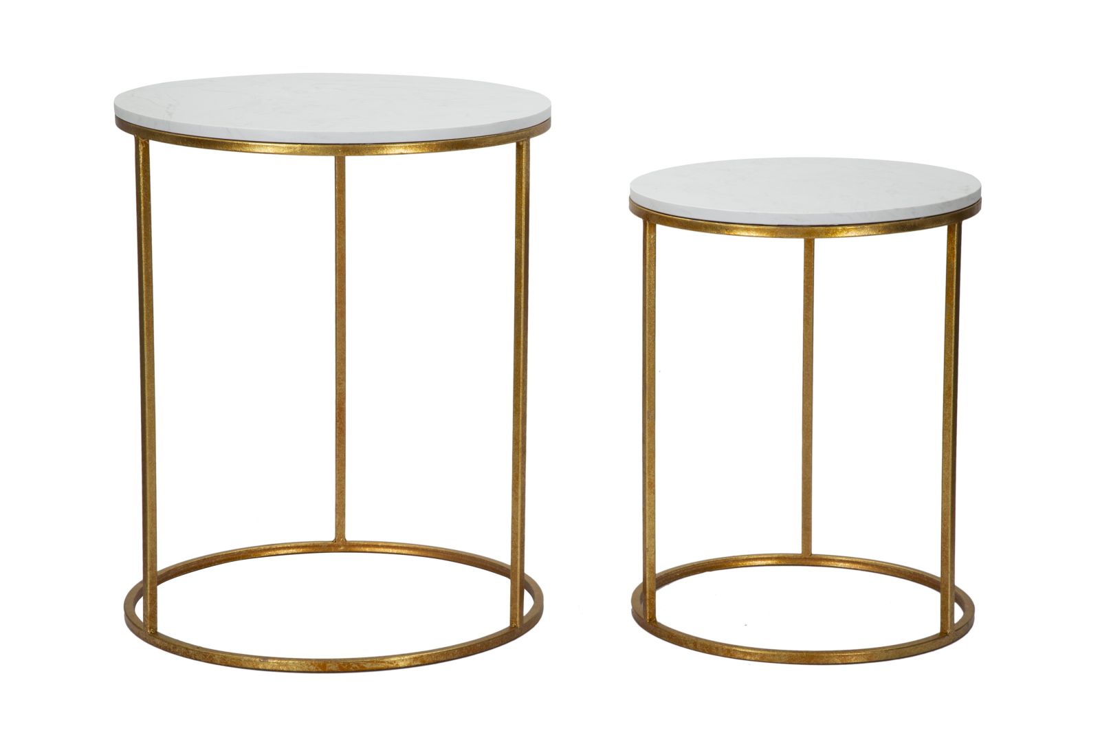 descrizione : GLAMIRON AND ARTIFICIAL MARBLEGOLD AND WHITESET DI 2 TAVOLINETTI ROTONDI IN METALLO DORATO CON PIANO IN MARMO BIANCO. L’ELEGANZA DELLE LINEE SEMPLICI IN ORO SI UNISCE ALLA CLASSE DEL MARMO BIANCO PER RENDERE SPECIALE OGNI LIVING.