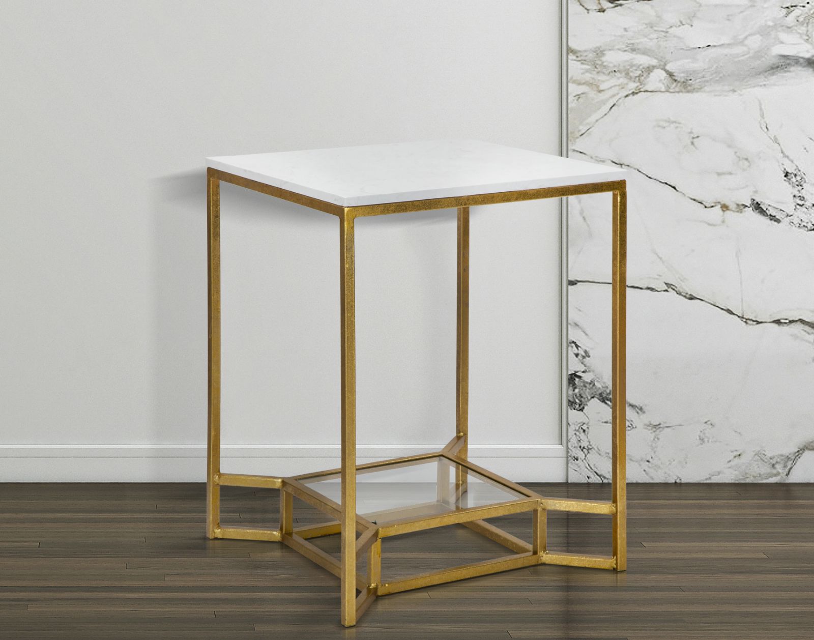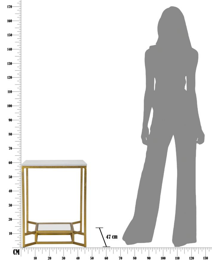 descrizione : GLAMIRON, GLASS AND ARTIFICIAL MARBLEGOLD AND WHITETAVOLO DA CAFFÈ QUADRATO IN METALLO DORATO CON PIANO IN MARMO BIANCO E RIPIANO INFERIORE IN VETRO. LE LINEE GEOMETRICHE E SQUADRATE DELLA STRUTTURA IN METALLO DORATO SI FONDONO ALLA PERFEZIONE CON L’ELEGANZA DEL VETRO E DEL MARMO BIANCO PER RENDERE SPECIALE OGNI LIVING.*between shelves height cm 49 *small shelf size cm 30×30