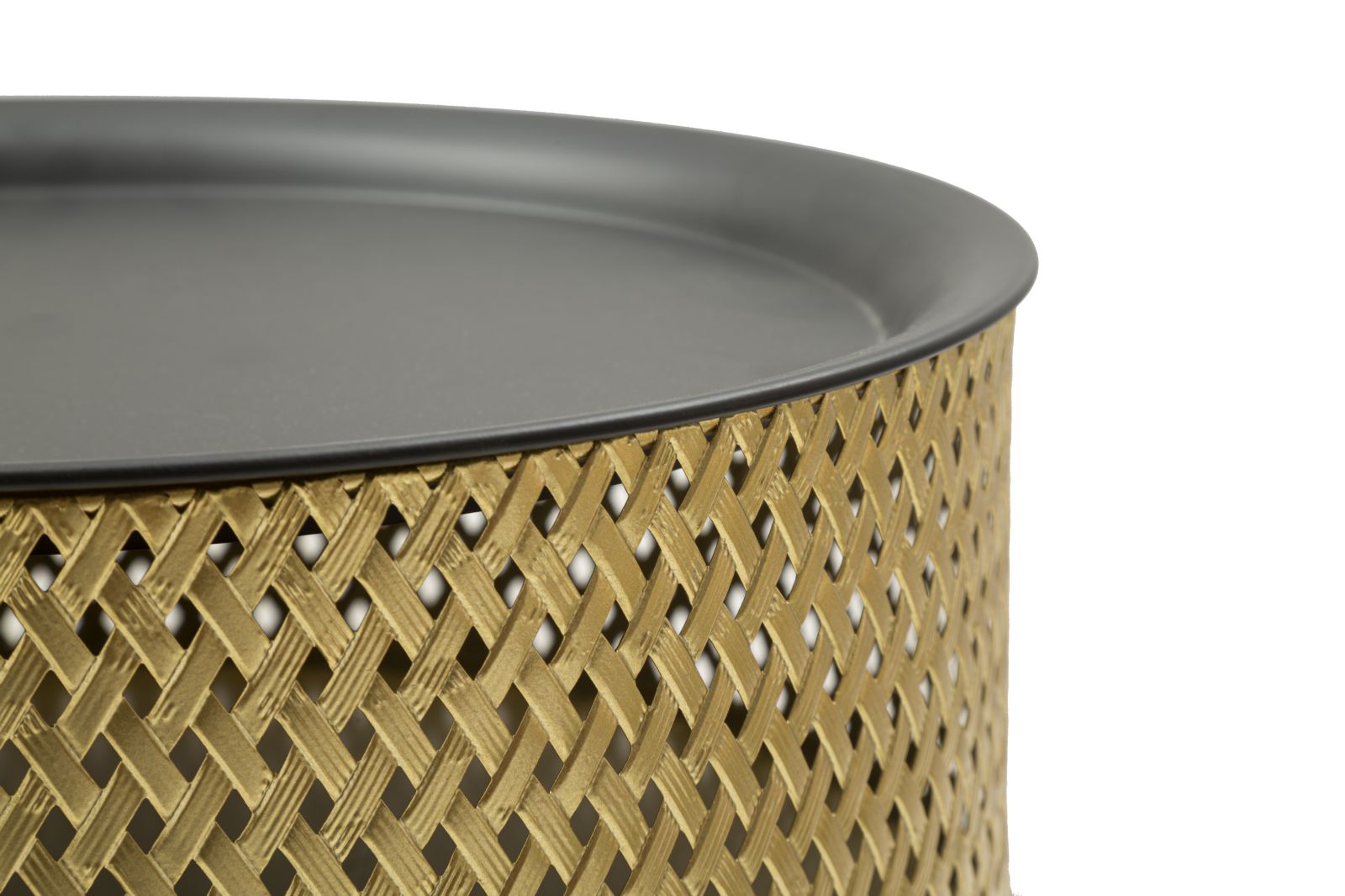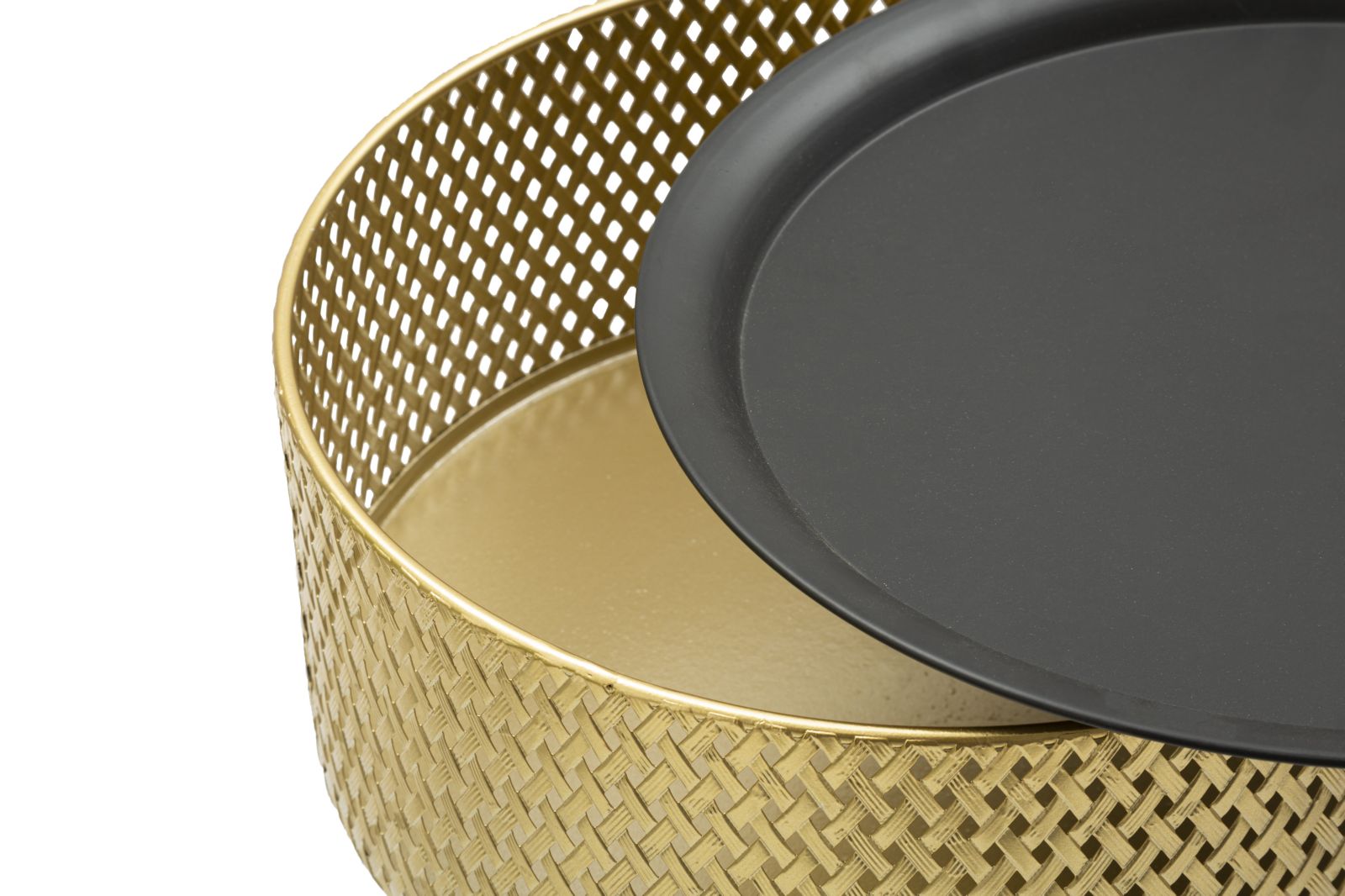 descrizione : GLAMIRONGOLD AND BLACKTAVOLINETTO ROTONDO IN METALLO DORATO CON PIANO NERO. LA PARTE SUPERIORE È FINEMENTE DECORATA CON INTRECCI PER DONARE UN TOCCO DI ELEGANZA. IL TOP È REMOVIBILE, ALL’INTERNO È PRESENTE UN PRATICO CONTENITORE.