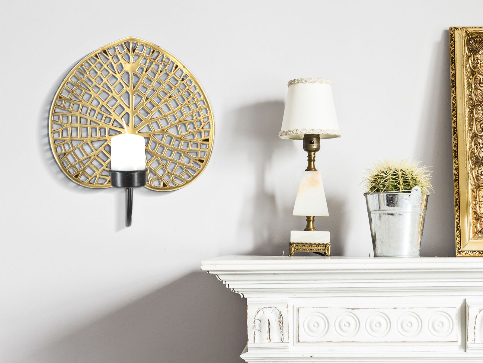 descrizione : GLAMPOLYRESIN AND IRONGOLD AND BLACKELEGANTE PORTACANDELE DA PARETE IN METALLO DORATO E NERO A FORMA DI FOGLIA DI LOTO. UN TOCCO ESOTICO E GLAM PER LA TUA CASA.