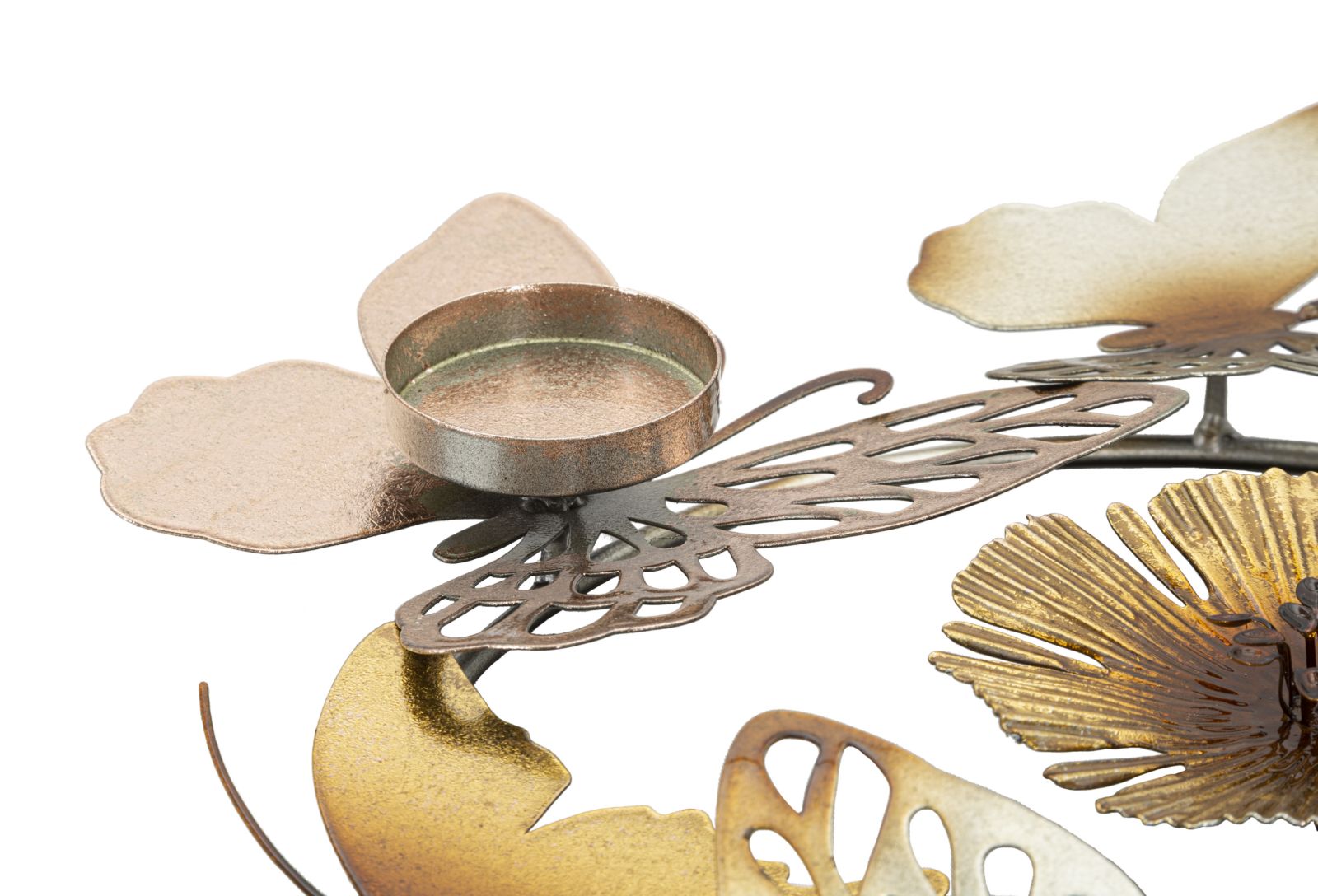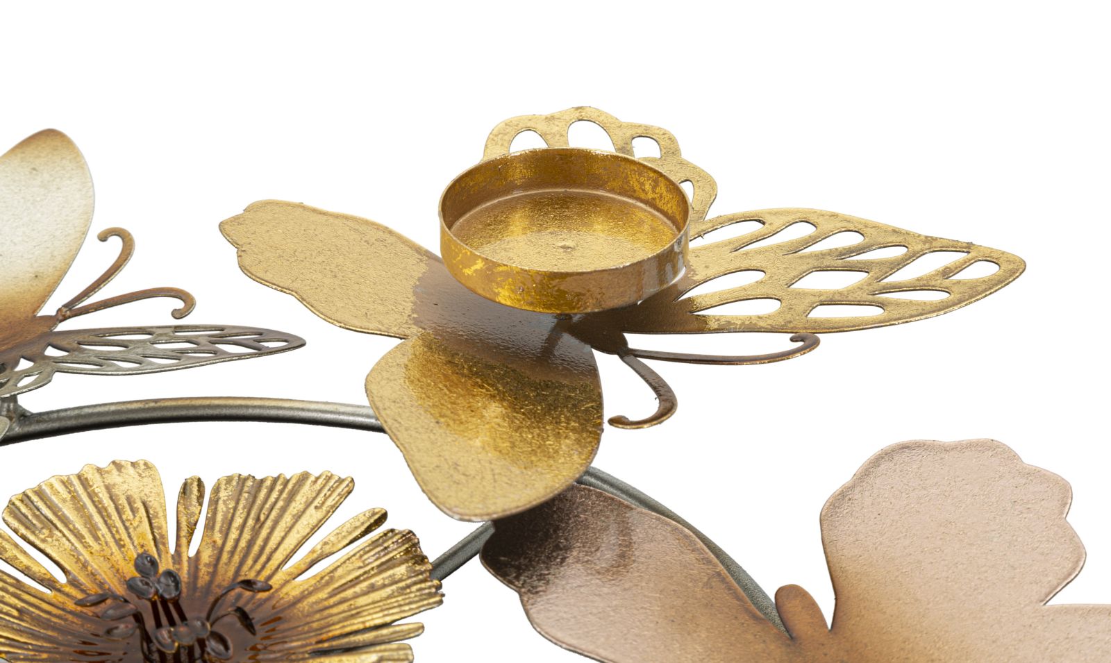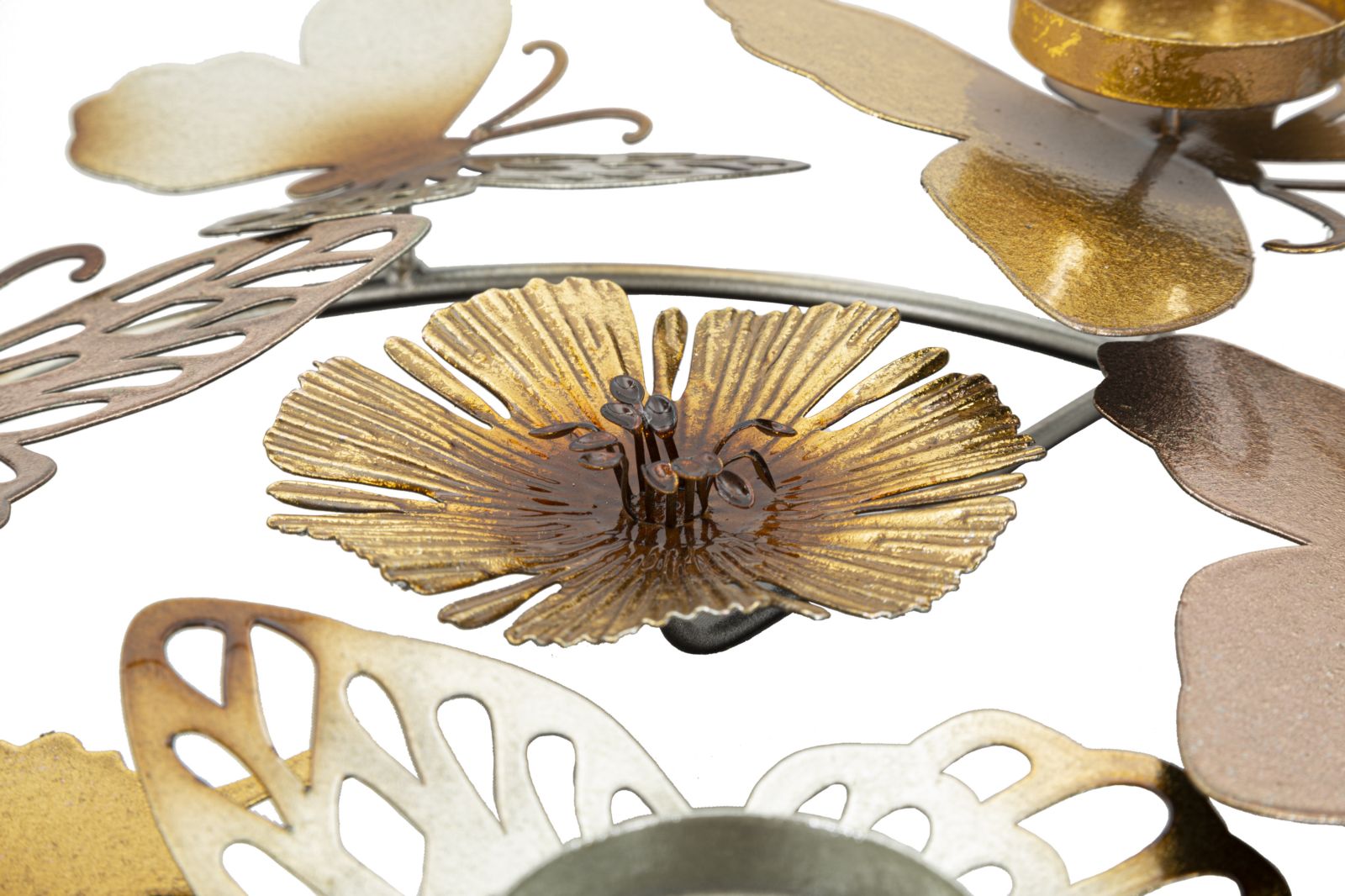 descrizione : GLAMIRONMULTICOLORPORTACANDELE ROTONDO COMPOSTO DA FIORI E FARFALLE MULTICOLORI. PUÒ CONTENERE 3 CANDELE