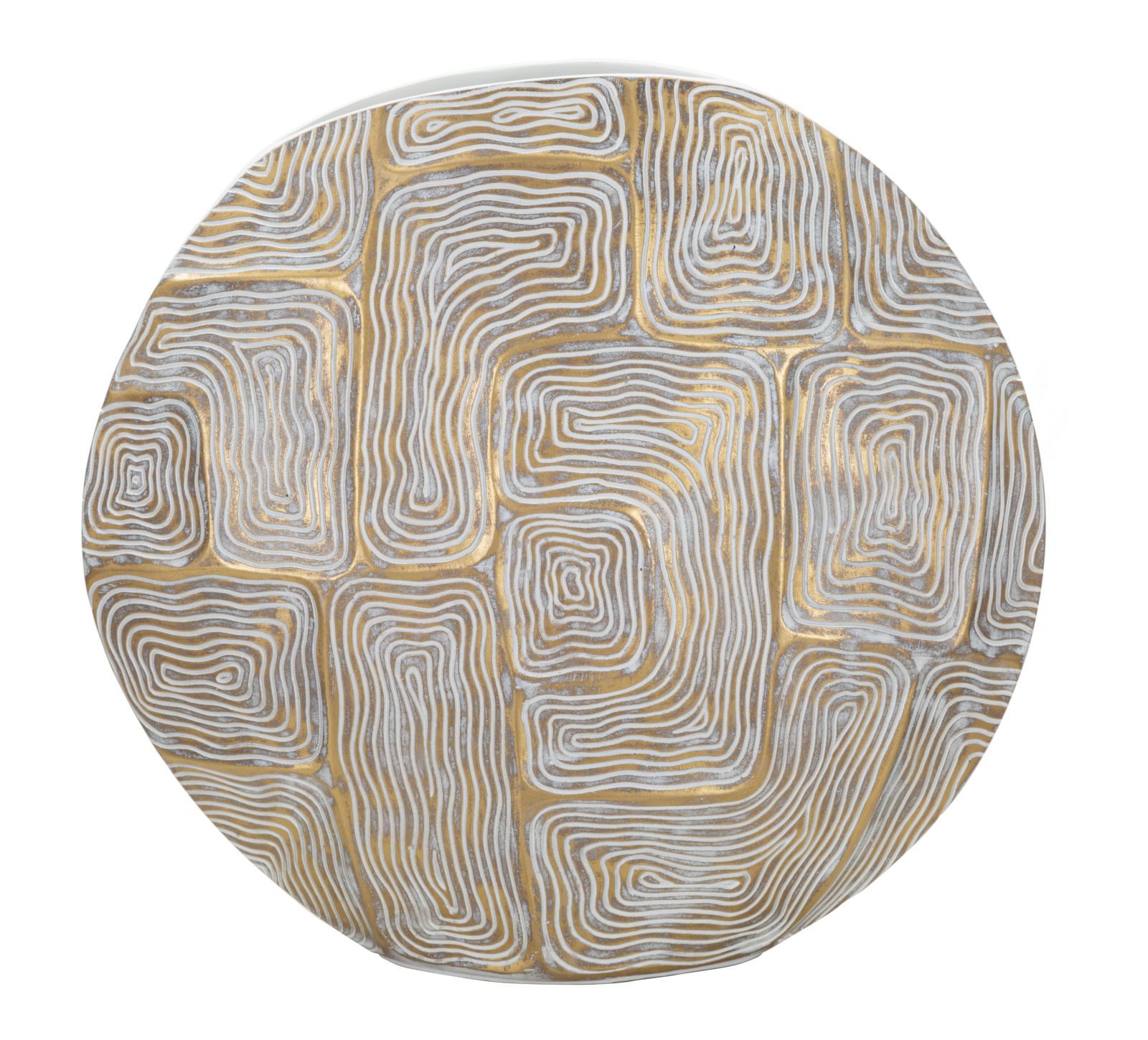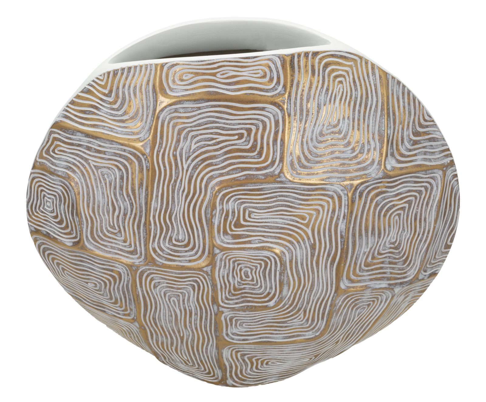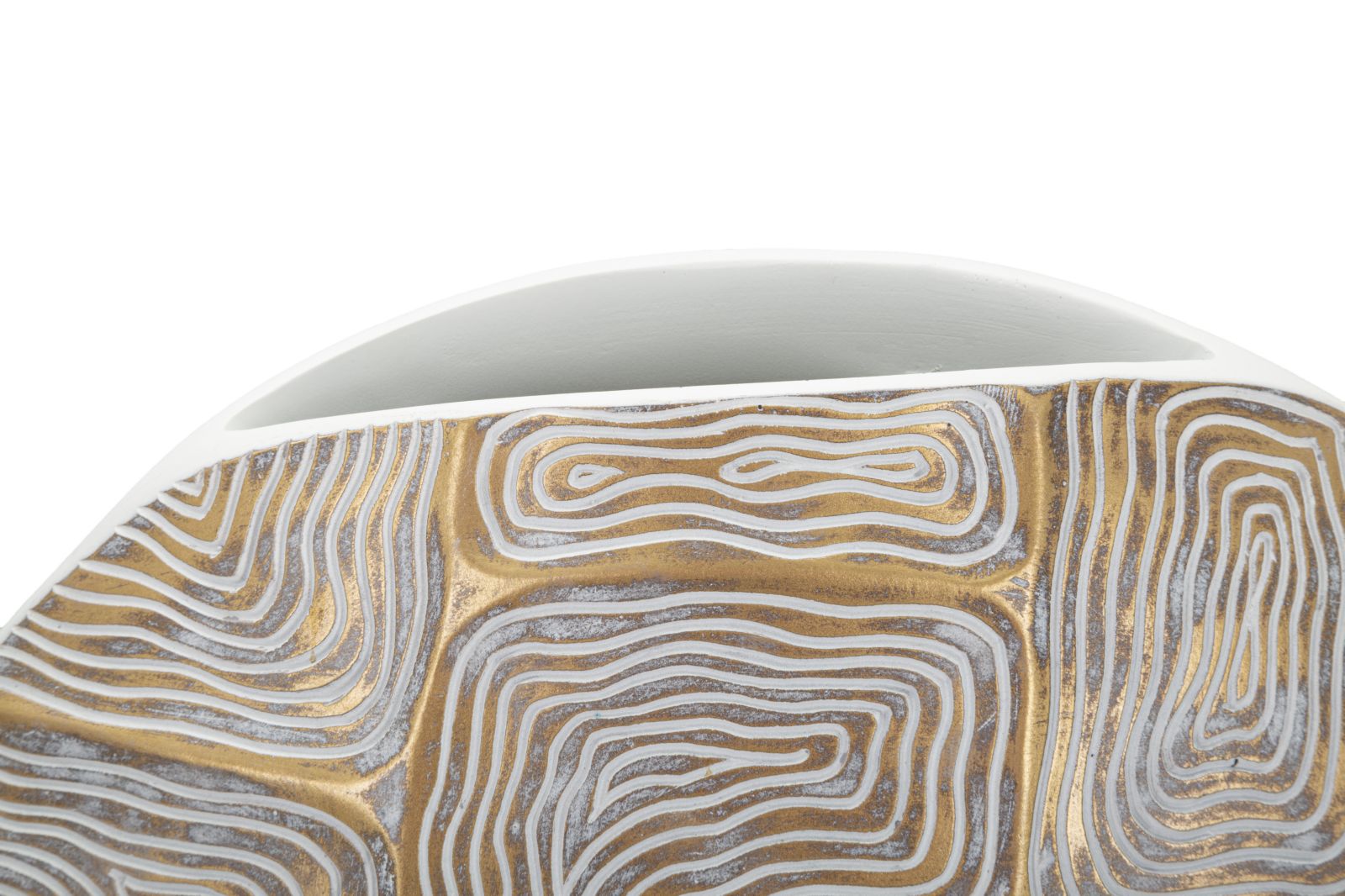 descrizione : MODERNPOLYRESINGOLD, WHITEVASO IN RESINA ELEGANTEMENTE DECORATO DA FORME GEOMETRICHE DALLE LINEE MORBIDE E ARROTONDATE.hole size cm 15×5