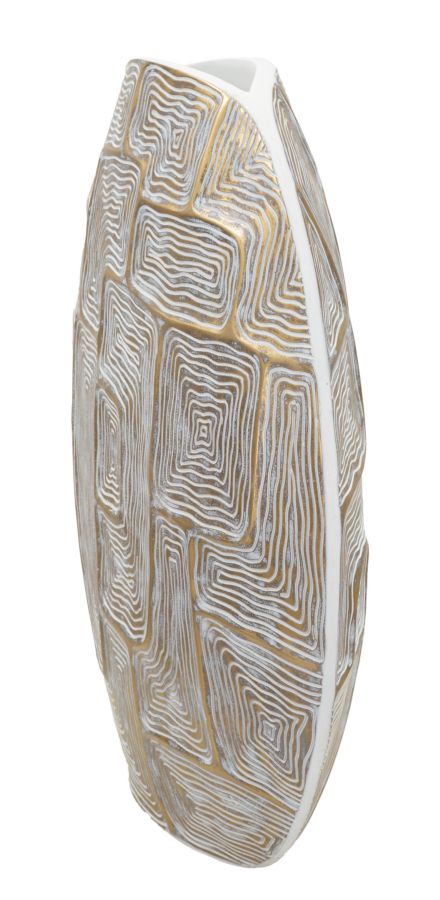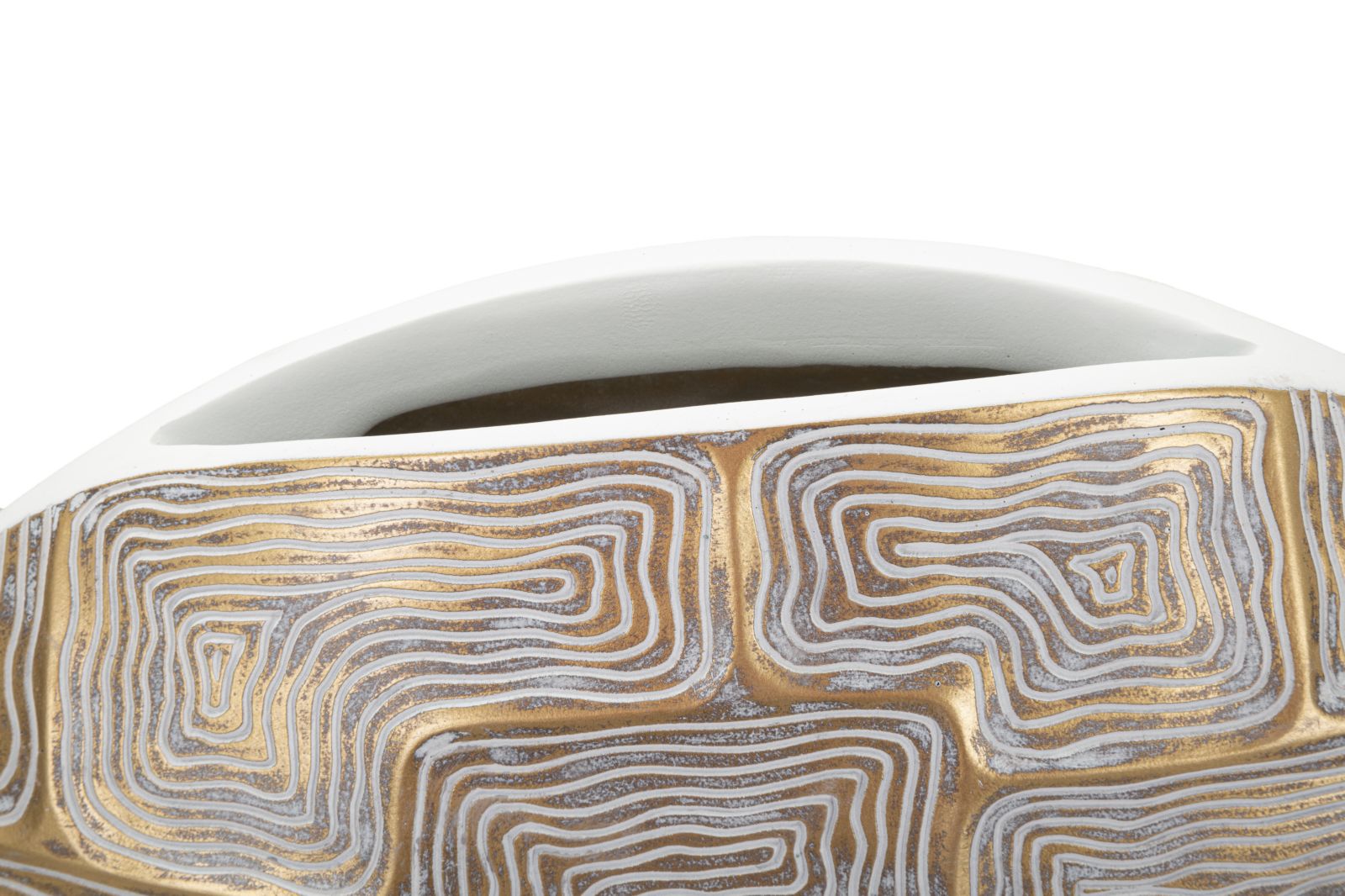 descrizione : MODERNPOLYRESINGOLD, WHITEVASO IN RESINA ELEGANTEMENTE DECORATO DA FORME GEOMETRICHE DALLE LINEE MORBIDE E ARROTONDATE.hole size cm 19,5×4,5
