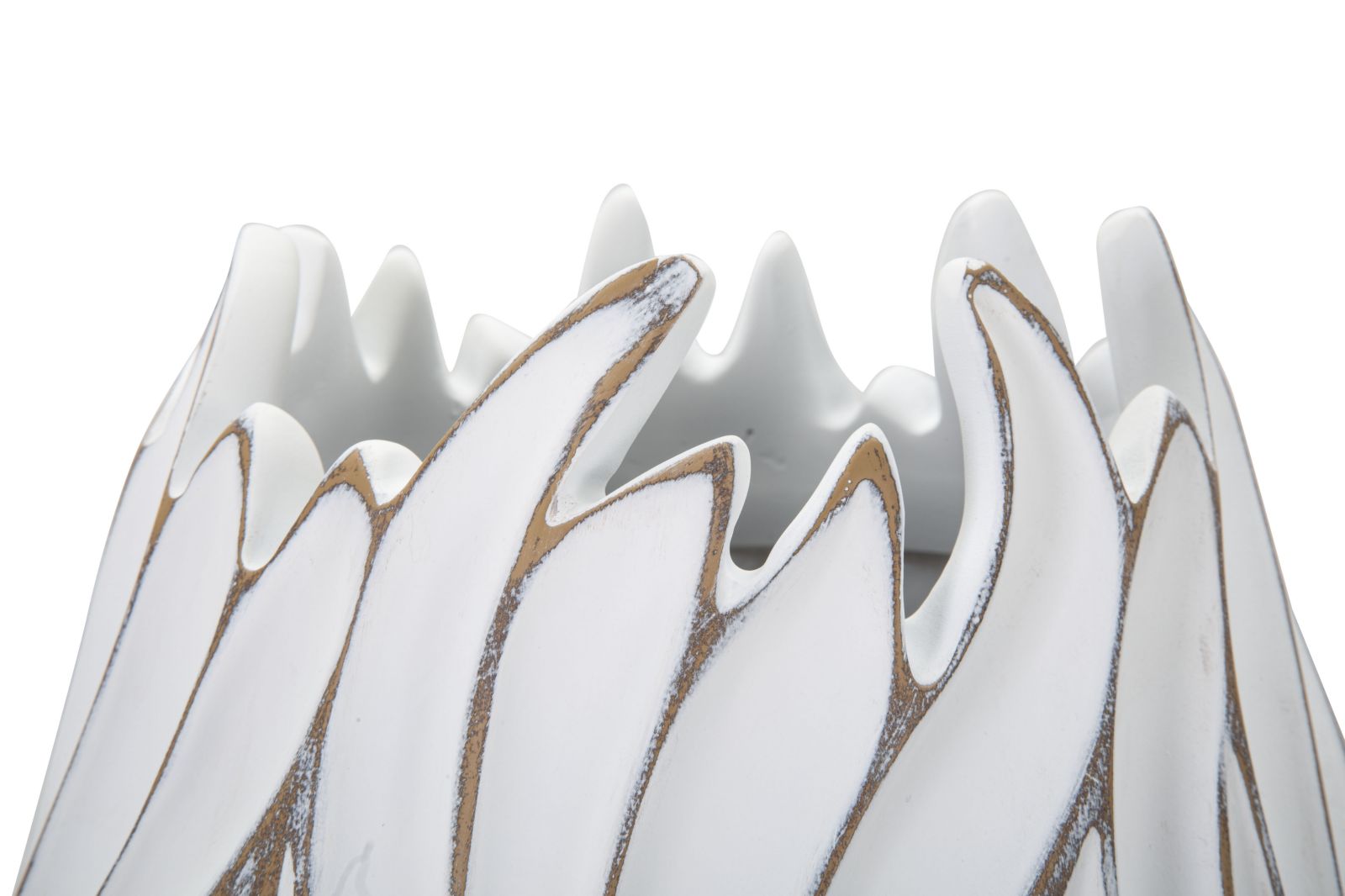 Confrontadescrizione : BOHO CHICHPOLYRESINWHITE WASHVASO OVALE CON DECORAZIONI ONDULATE IN RILIEVO.