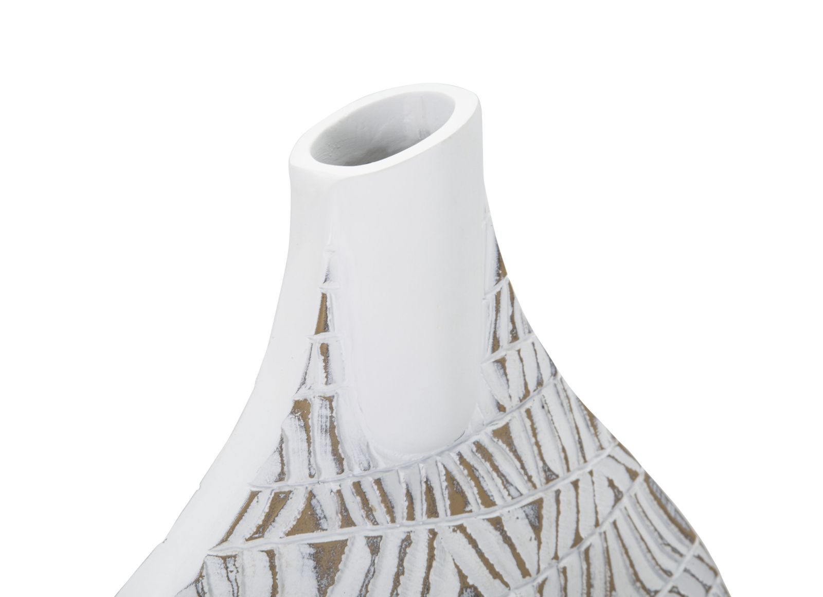 descrizione : BOHO CHICHPOLYRESINWHITE WASHVASO CON ELEGANTI DECORAZIONI INTAGLIATE ASTRATTE E GEOMETRICHE.