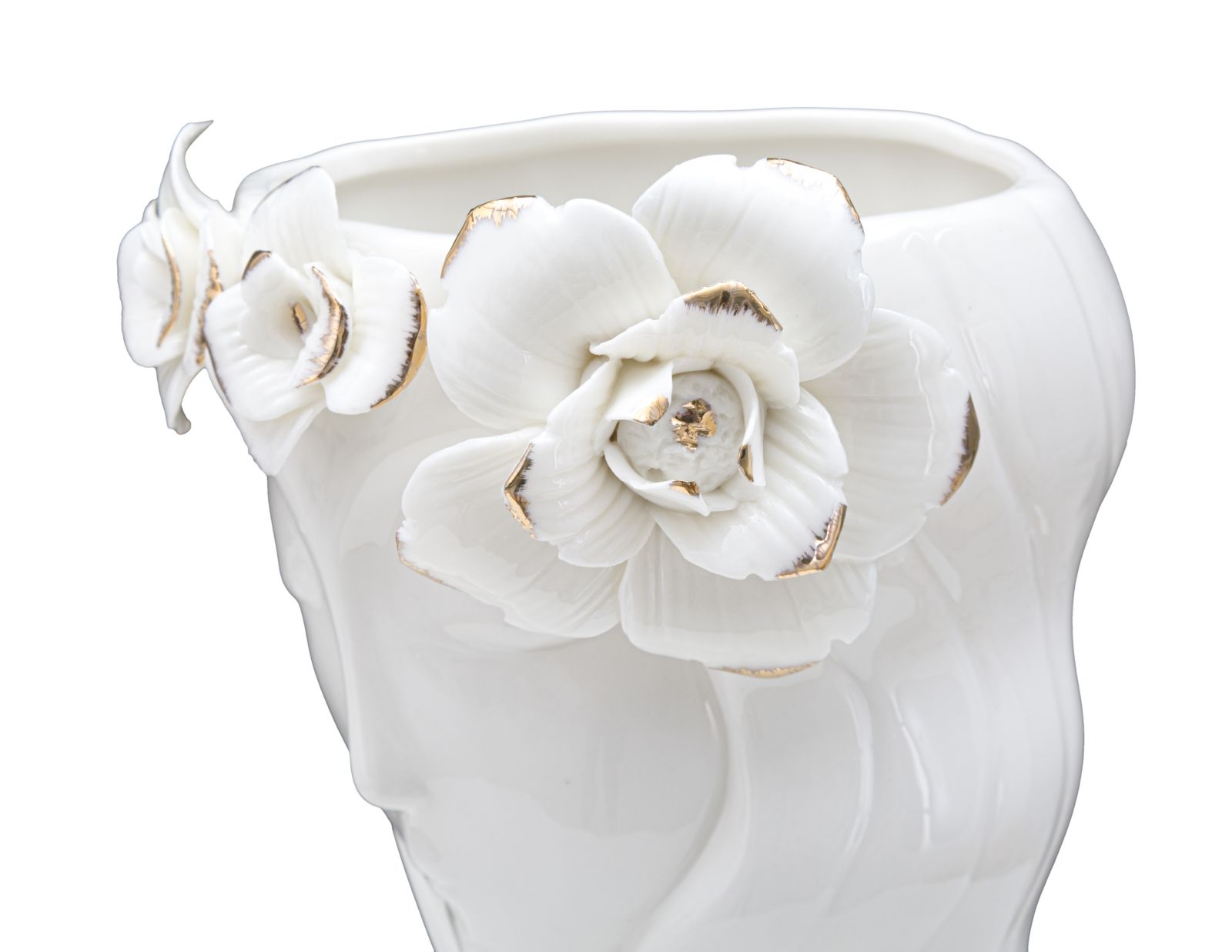 descrizione : GLAMPORCELAINWHITE AND GOLDELEGANTE VASO IN PORCELLANA BIANCA CON DELICATE DECORAZIONI DORATE. IL PARTICOLARE DESIGN ISPIRATO AD UN VOLTO FEMMINILE E LE FORME MORBIDE DONANO UN TOCCO DI GRAZIA E BELLEZZA.