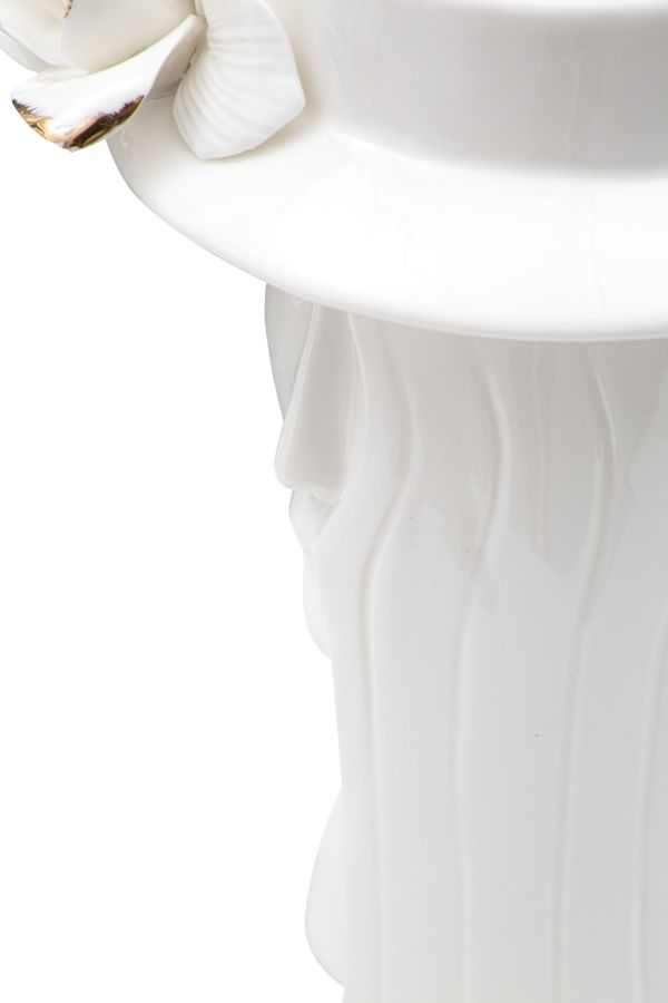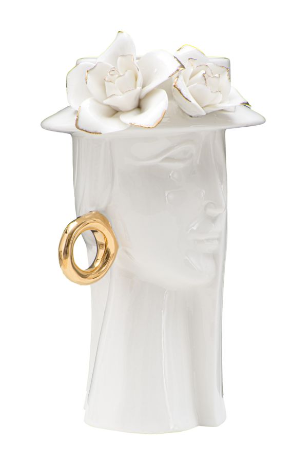 descrizione : GLAMPORCELAINWHITE AND GOLDELEGANTE VASO IN PORCELLANA BIANCA CON DELICATE DECORAZIONI DORATE. IL PARTICOLARE DESIGN ISPIRATO AD UN VOLTO FEMMINILE E LE FORME MORBIDE DONANO UN TOCCO DI GRAZIA E BELLEZZA.