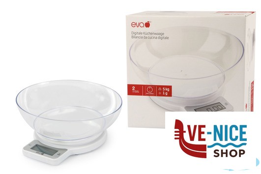 BILANCIA CUCINA DIGITALE 1G-5KG BIANCA CON BACINELLA TRASPARENTE 033423