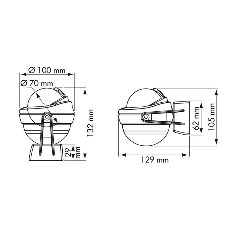 Conical card graduated every 5° apparent Ø 70 mm. Heading numerals every 30°. For motor boat from 5 to 8 mt.. Included 1 bulb 12 Vdc .Installation: Bracket mount on horizontal or vertical surface