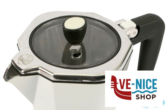 CAFFETTIERA CON CALDAIA IN ALLUMINIO EN 601 AD ALTO SPESSORE, COPERCHIO CON FINESTRA IN POLICARBONATO ANTIURTO E GUARNIZIONE IN SILICONE ALIMENTARE