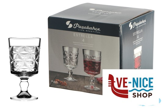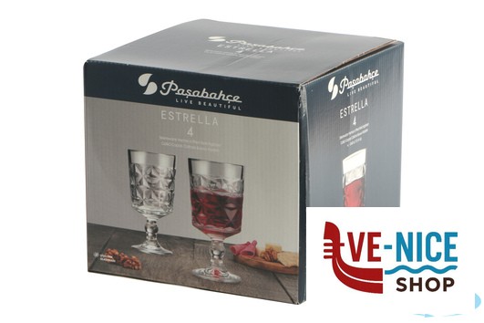 calici acqua ESTRELLA – CONFEZIONE 4 CALICI COCKTAIL-VINO CL 33 H.CM 16 GAMBO BASSO PASABAHCE
