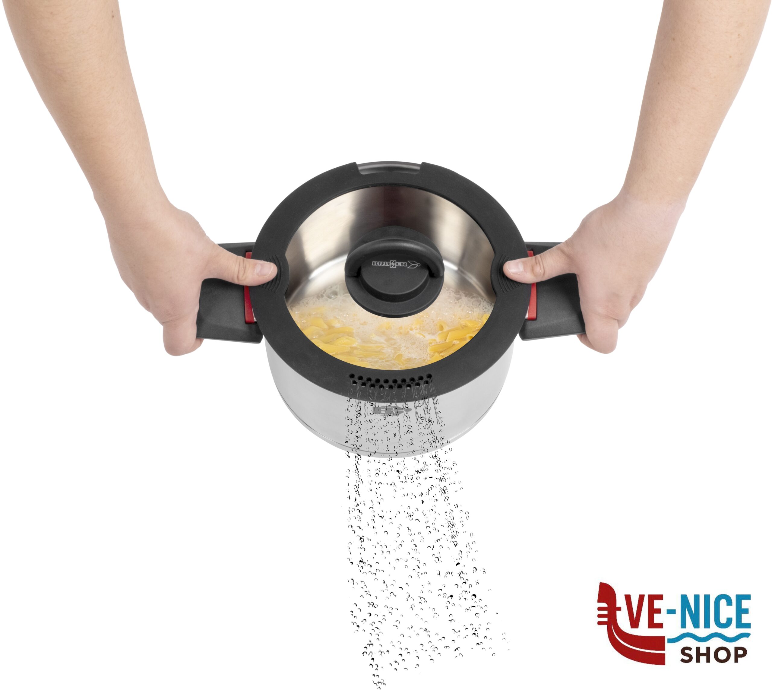 Academy Compact – questa innovativa serie di pentole di Brunner è un must assoluto per i camperisti e i diportisti! Realizzate in acciaio inox di alta qualità, le pentole Academy Compact sono dotate di manici pieghevoli salvaspazio, coperchio in vetro resistente al calore con funzione di scolatura e bordo in silicone antirumore, oltre a una durabilità che va oltre l’ordinario.