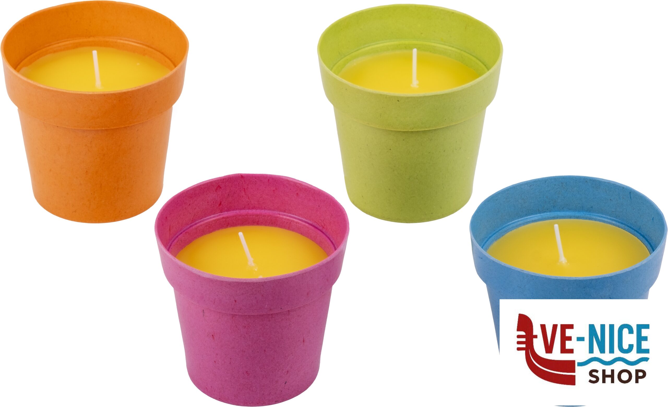 Outdoor citronella candle wrapped in elegant melamine buckets.