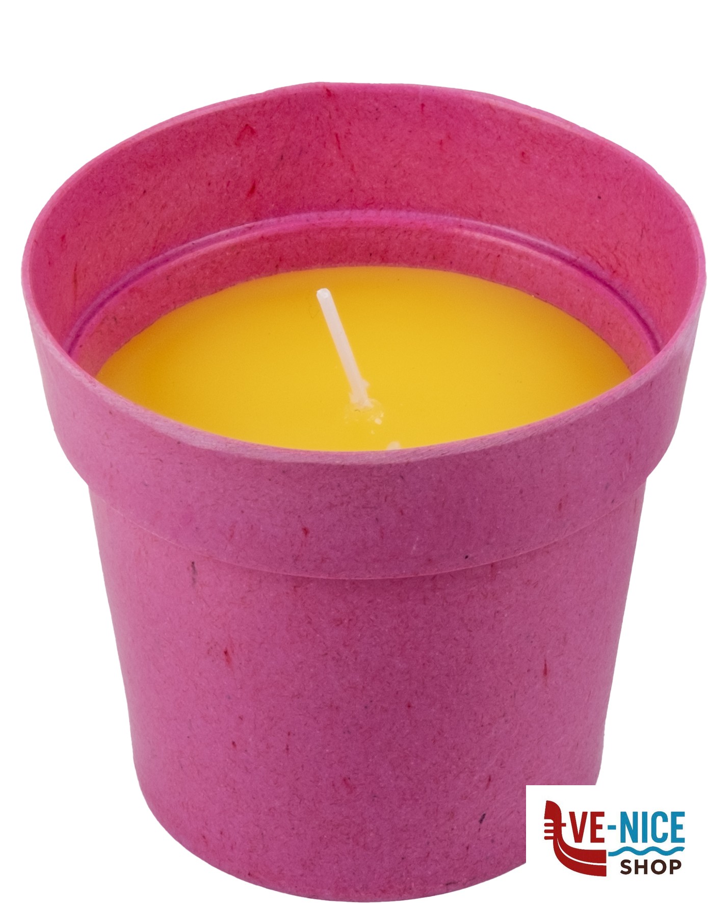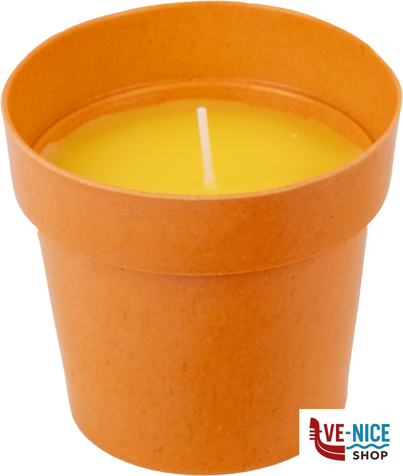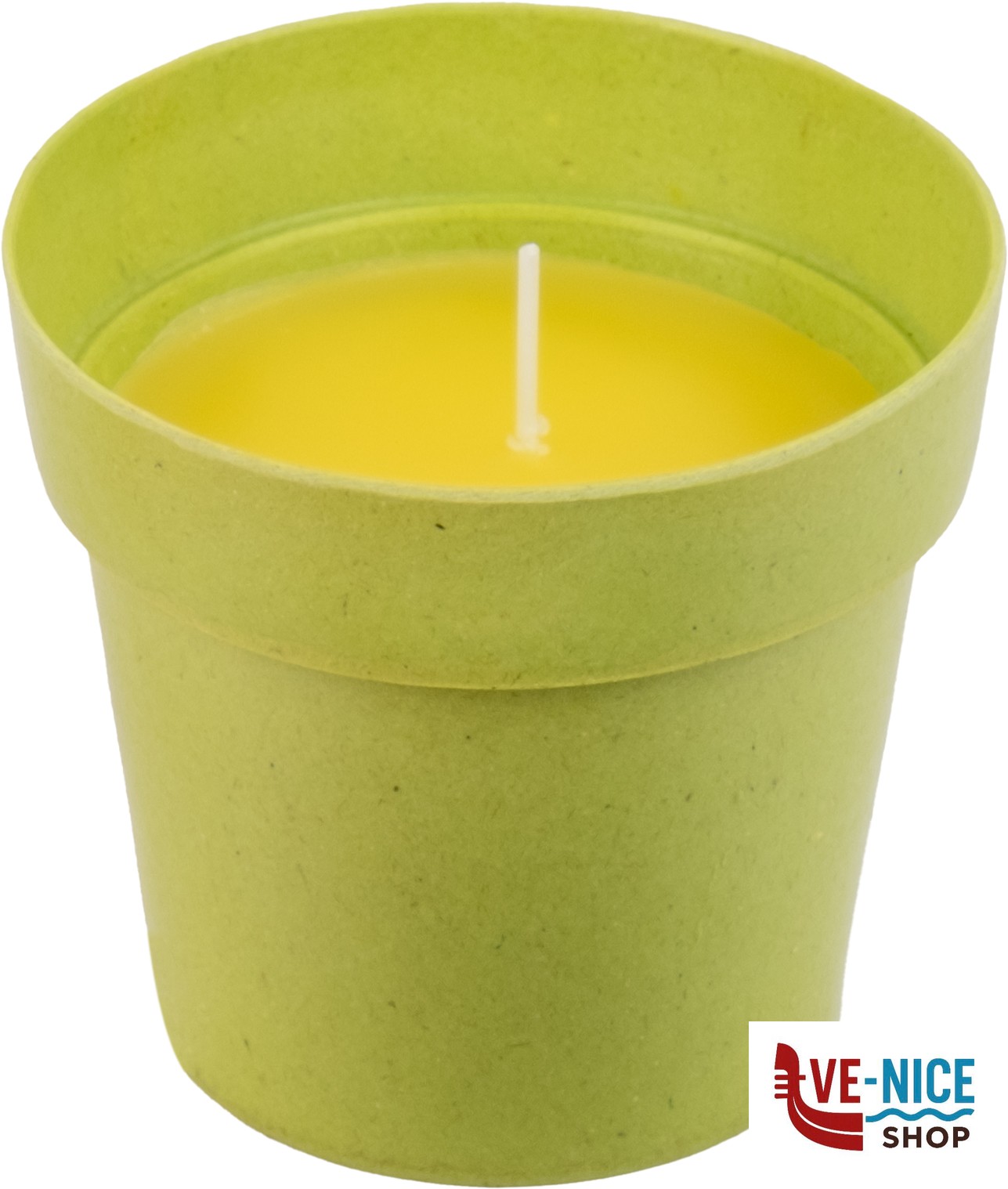 Candela alla citronella avvolta in elegante contenitore di melamina.