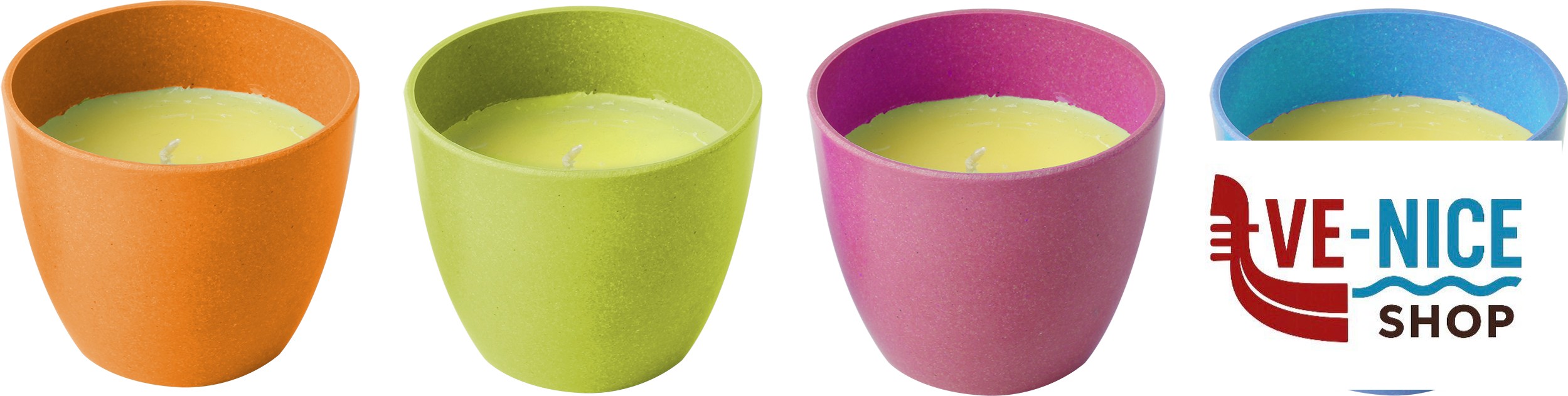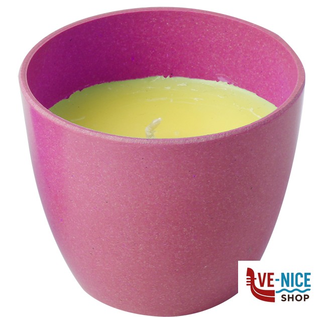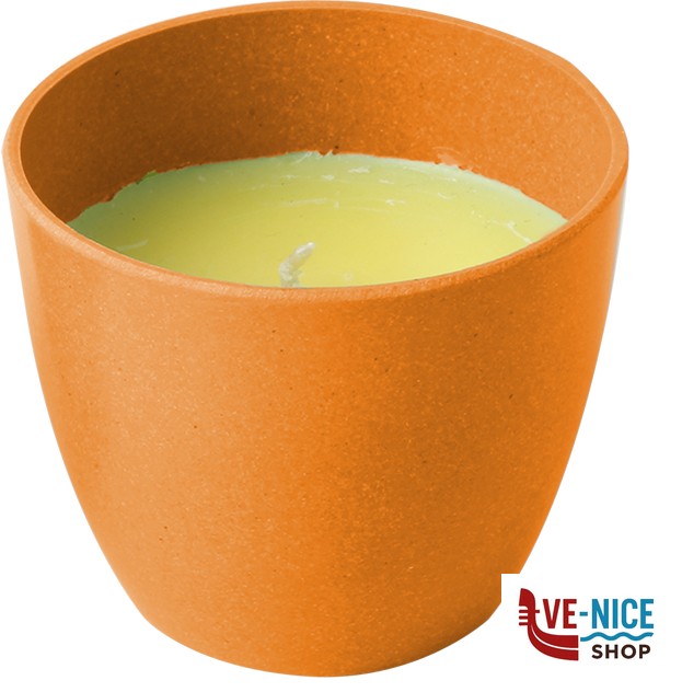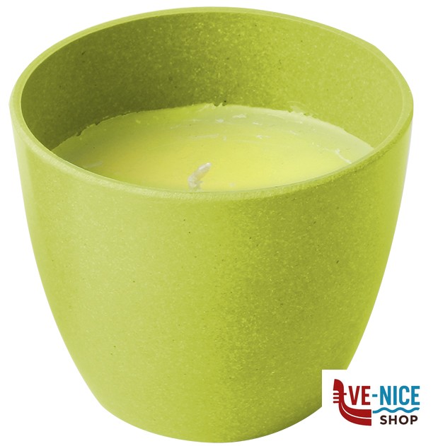 Candela alla citronella avvolta in elegante contenitore di melamina.