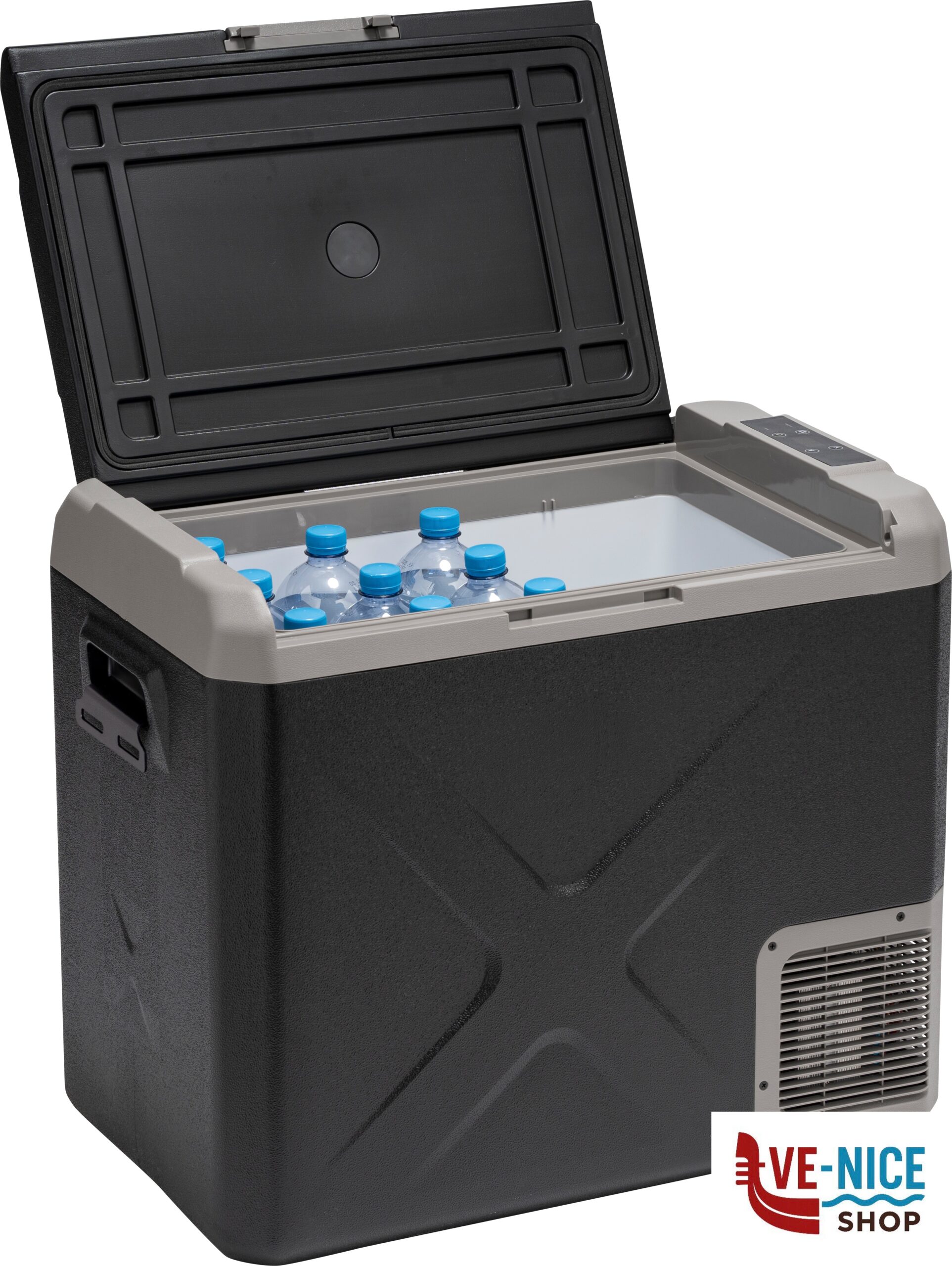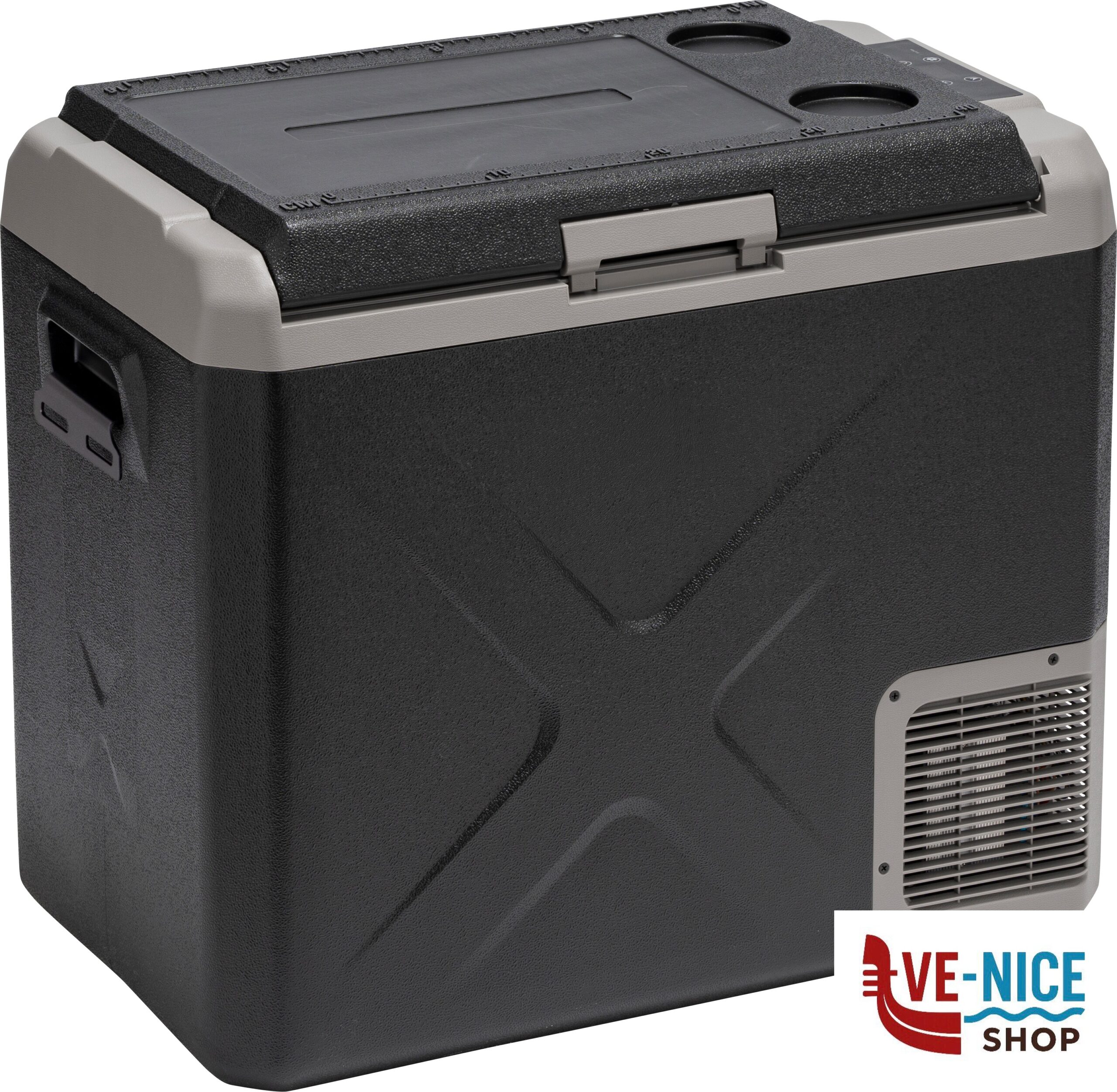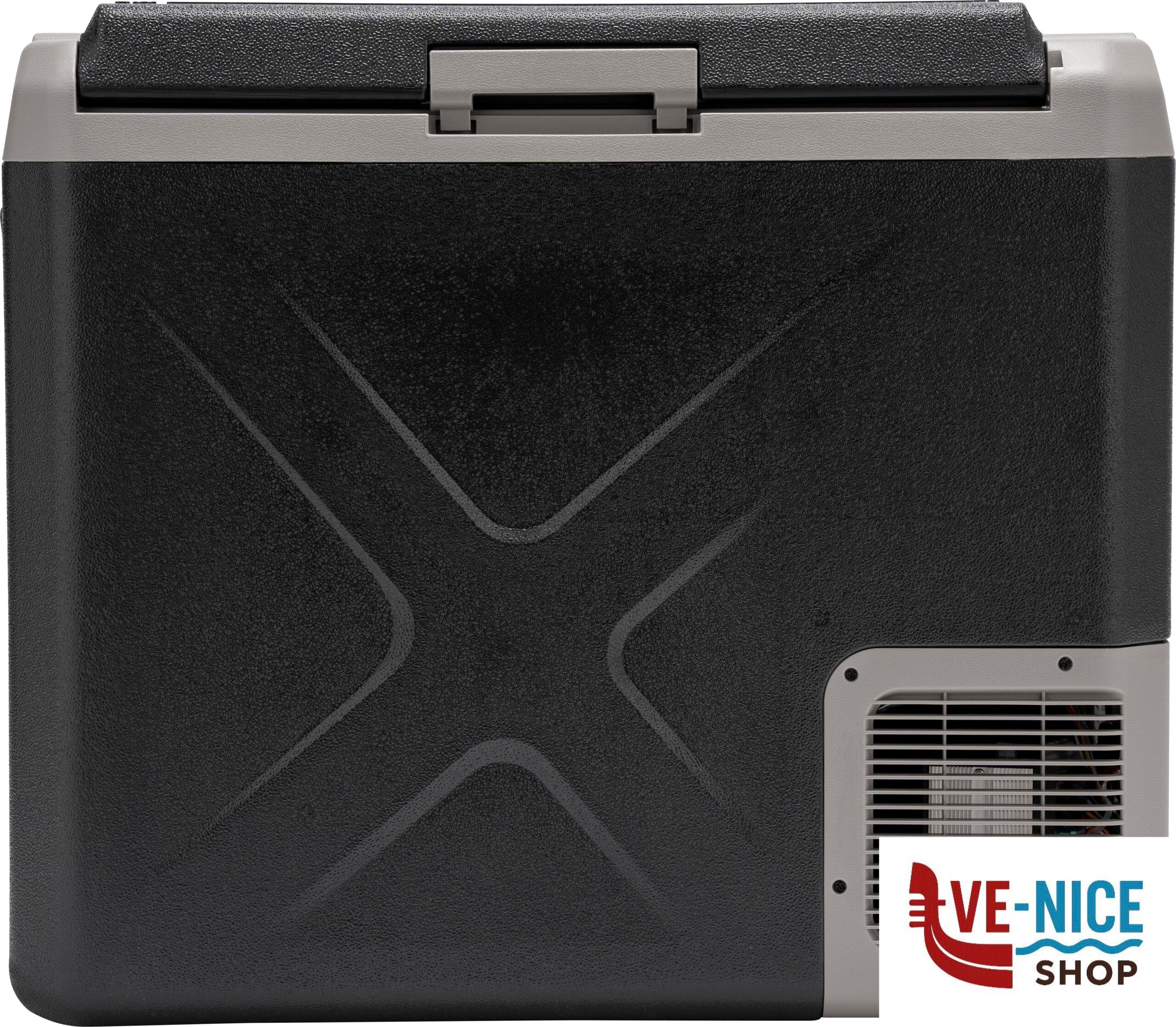 Frigo/congelatore portatile a compressore con scomparto unico dal design moderno e compatto. Dotato di resistente corpo in materiale plastico antiurto ad alta capacità isolante ed un display digitale per il controllo della temperatura.