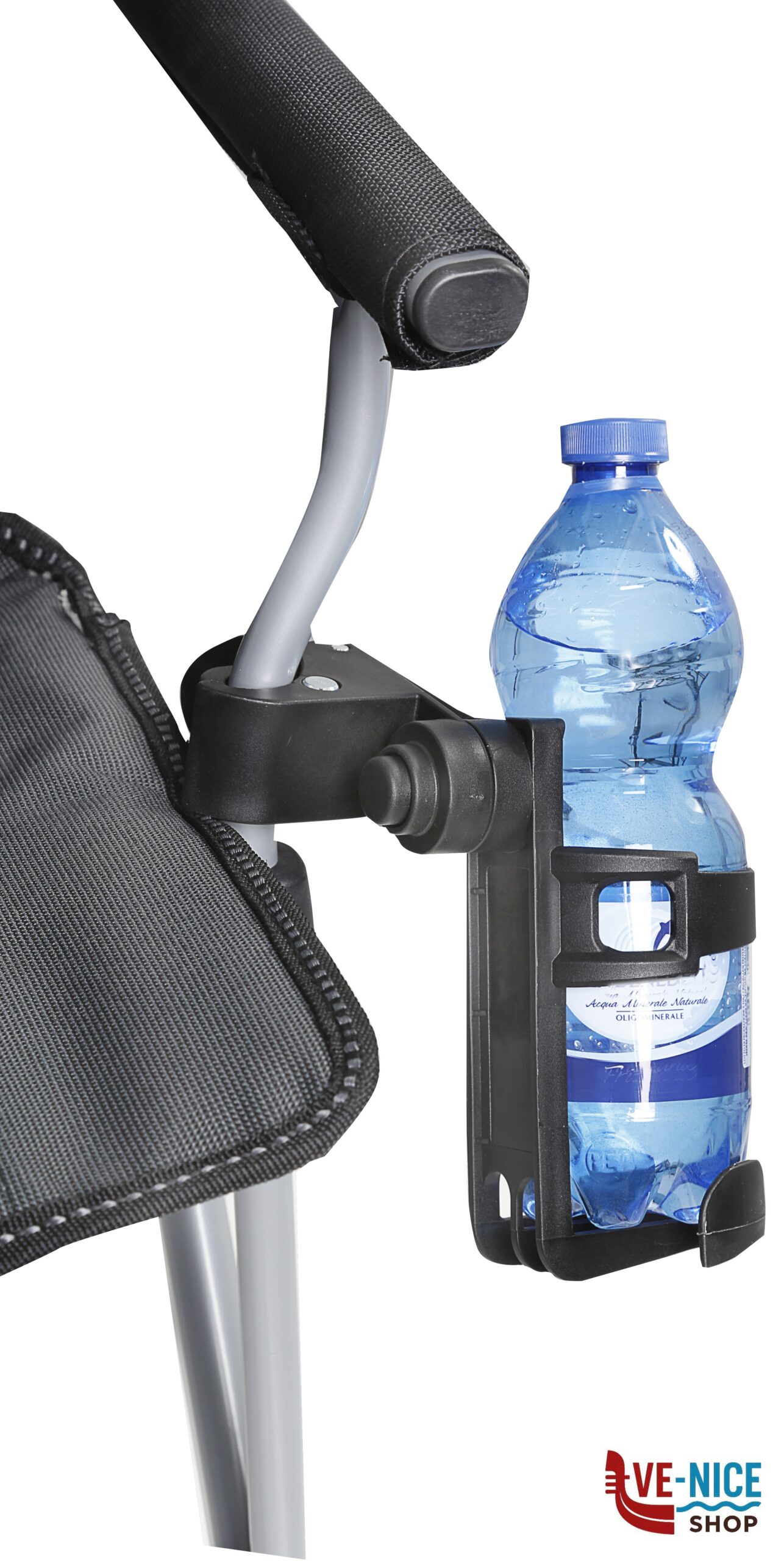 The Cancage cup holder ensures a secure grip of beverage cans and bottles at most outdoor, camping and garden chairs. The quick assembly system with angular adjustment allows an individual positioning of the holder.