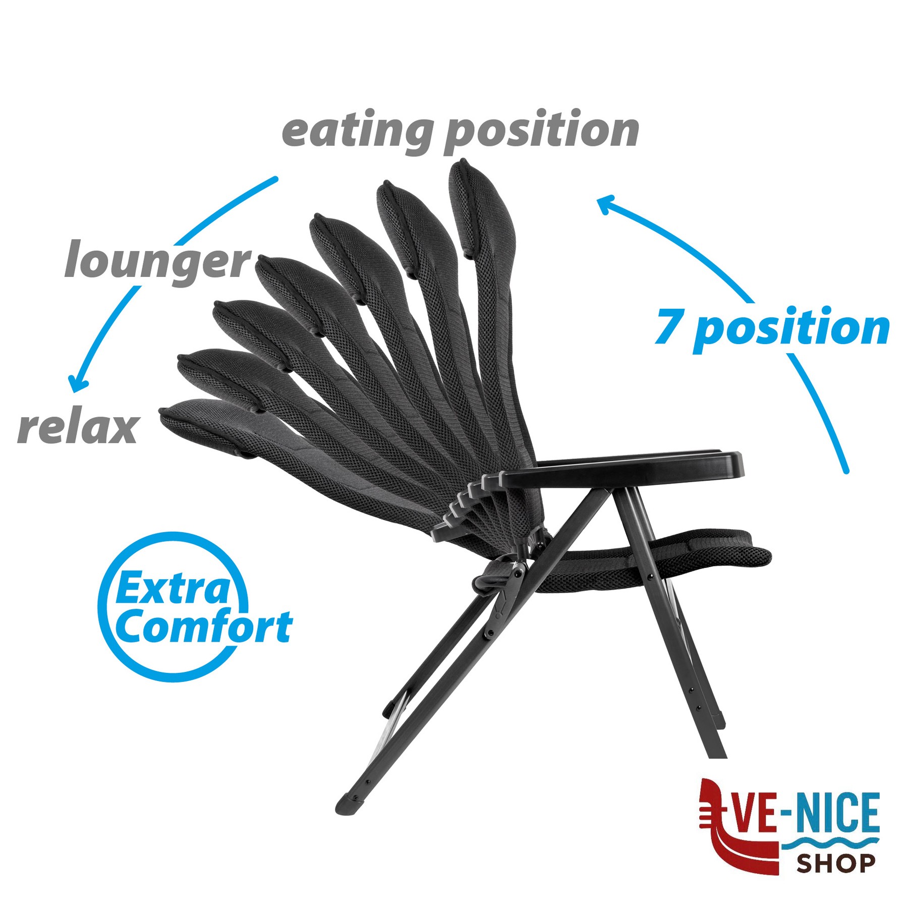 The Aravel Vitachic folding chair comes with an adjustable high backrest (7 positions) and our special all-weather 3Durafeel Pro padding for maximum comfort. Equipped with a lightweight aluminum folding gear that allows a quick and trouble-free folding and unfolding process. Available in 3 sizes: S-M-L.
