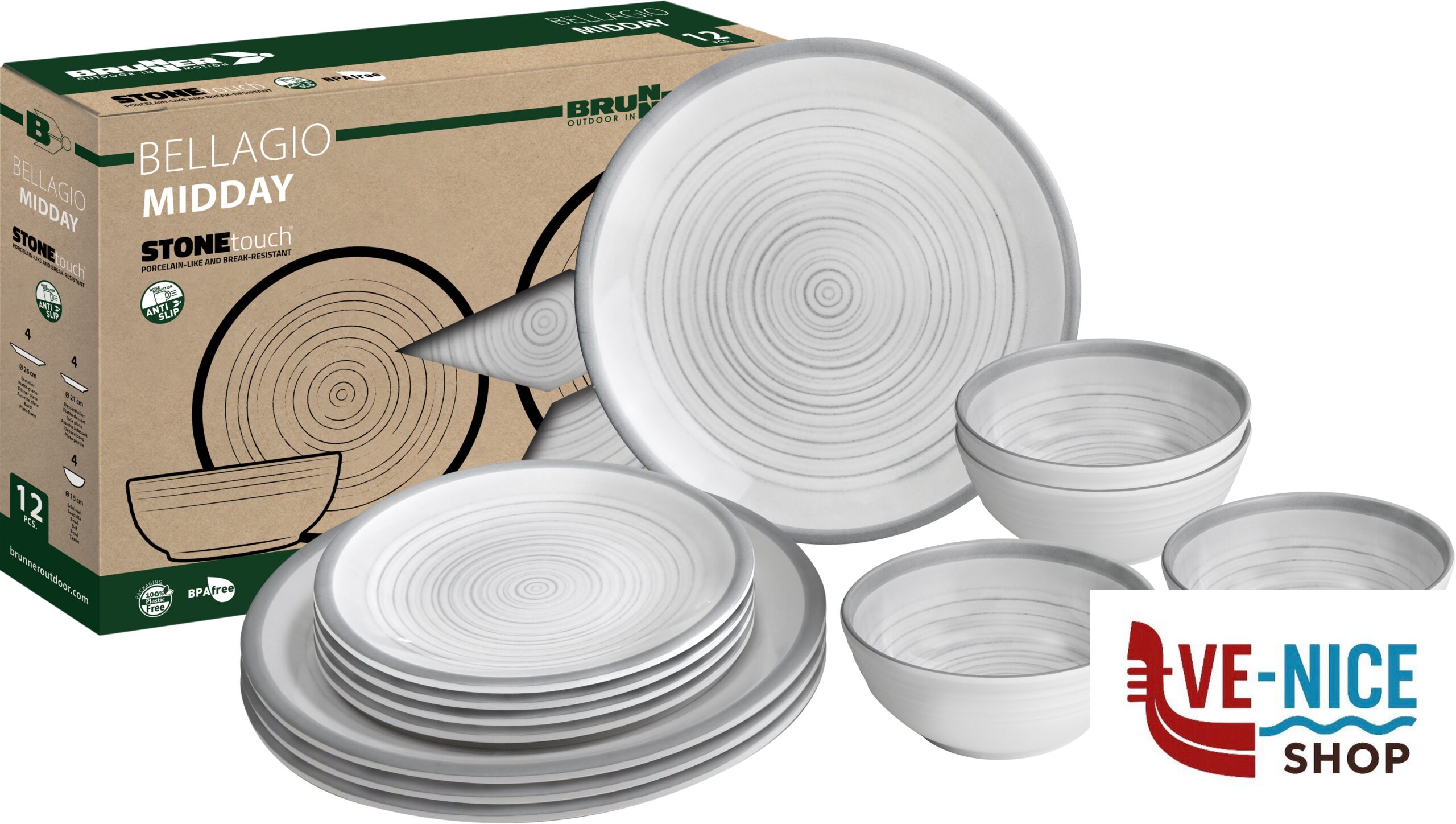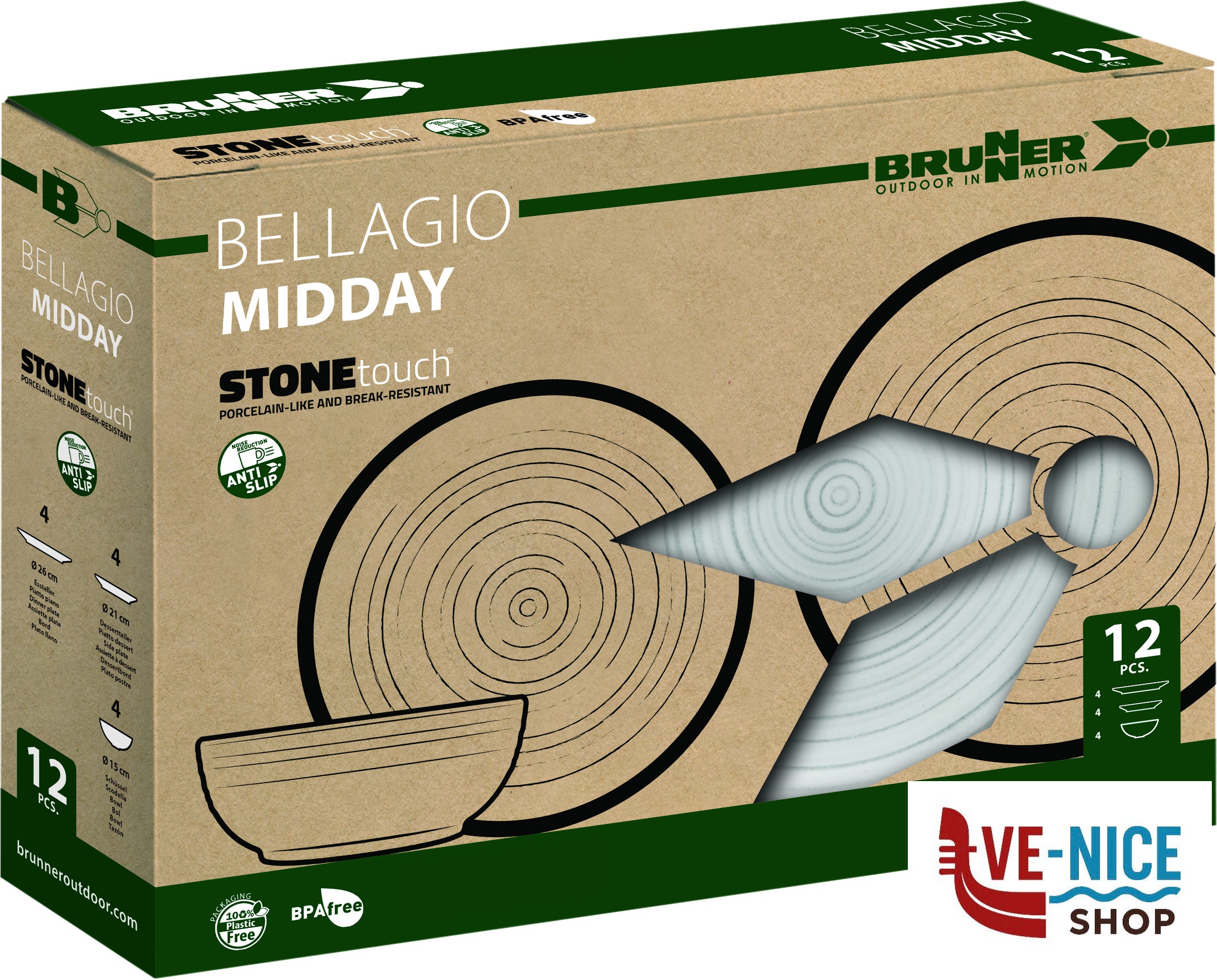 Pezzi~12!!!Piatto dessert~4 x Ø 21 cm!!!Piatto piano~4 x Ø 26 cm!!!Scodella~4 x Ø 15 cm