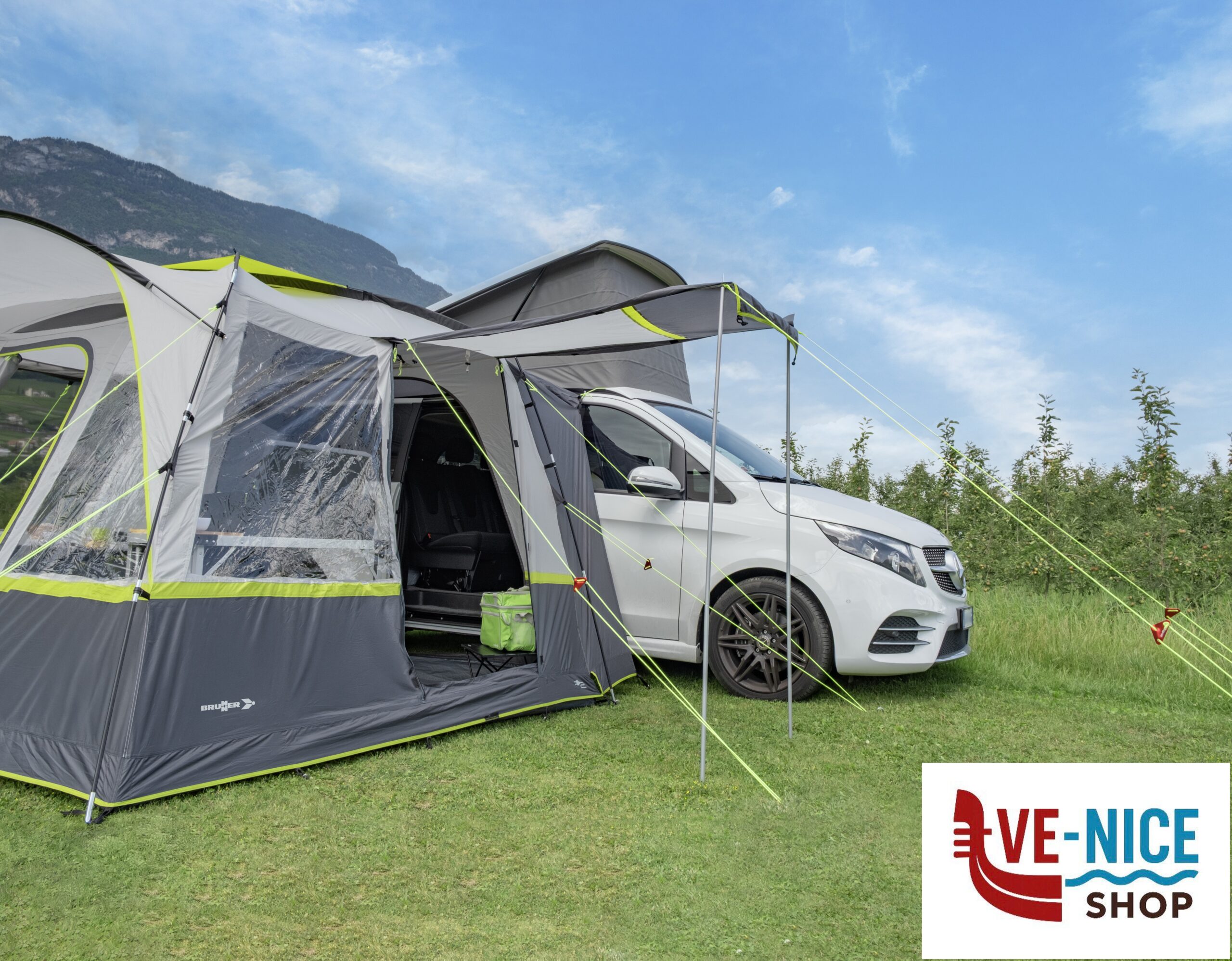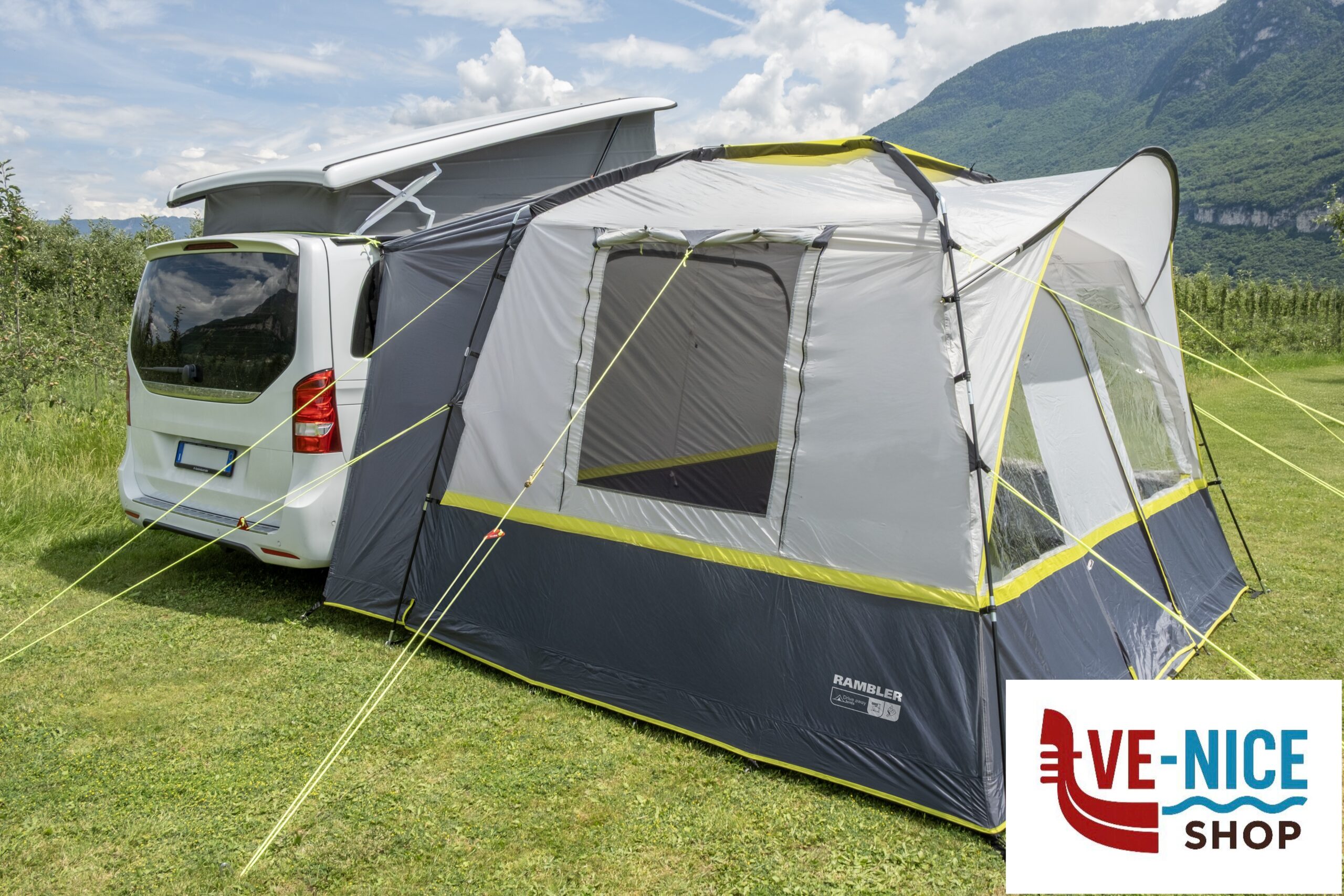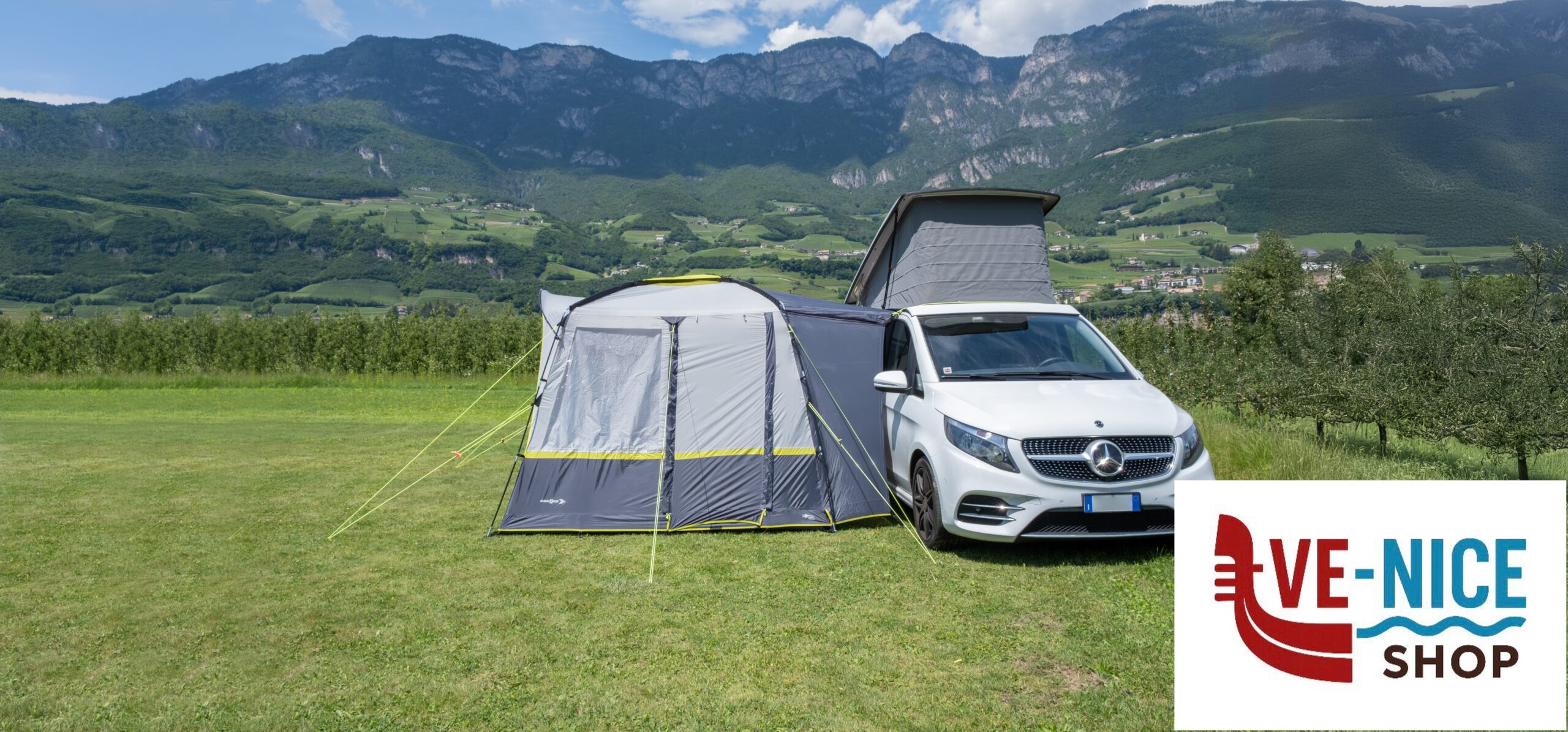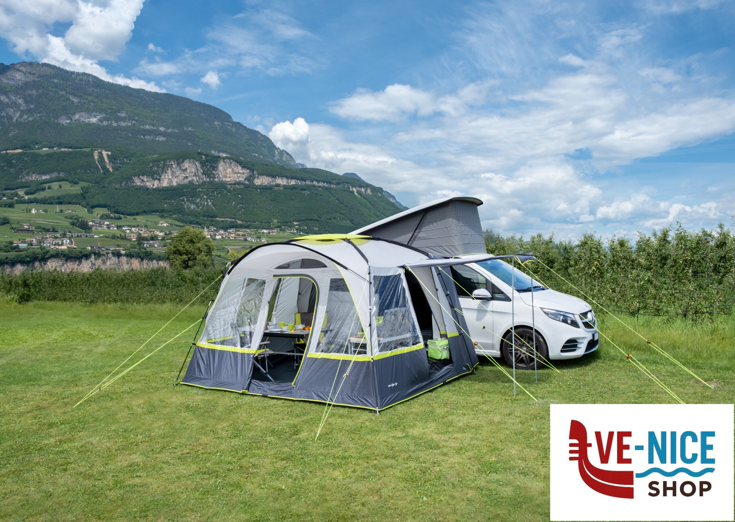 Spaziosa tenda per van e minibus di concezione moderna. Ottima ventilazione. Struttura collaudata e indipendente che permette di usufruire del mezzo per eventuali escursioni senza smontare la tenda. 4 grandi finestre Panorama oscurabili lasciano penetrare molta luce all´interno della tenda e consentono contemporanemante un´ampia vista verso l´esterno. Il catino a cucitura perimetrale garantisce inoltre una speciale protezione da acqua, umidità e fastidiosi insetti. La fornitura comprende gli accessori di montaggio ed una comoda borsa custodia.