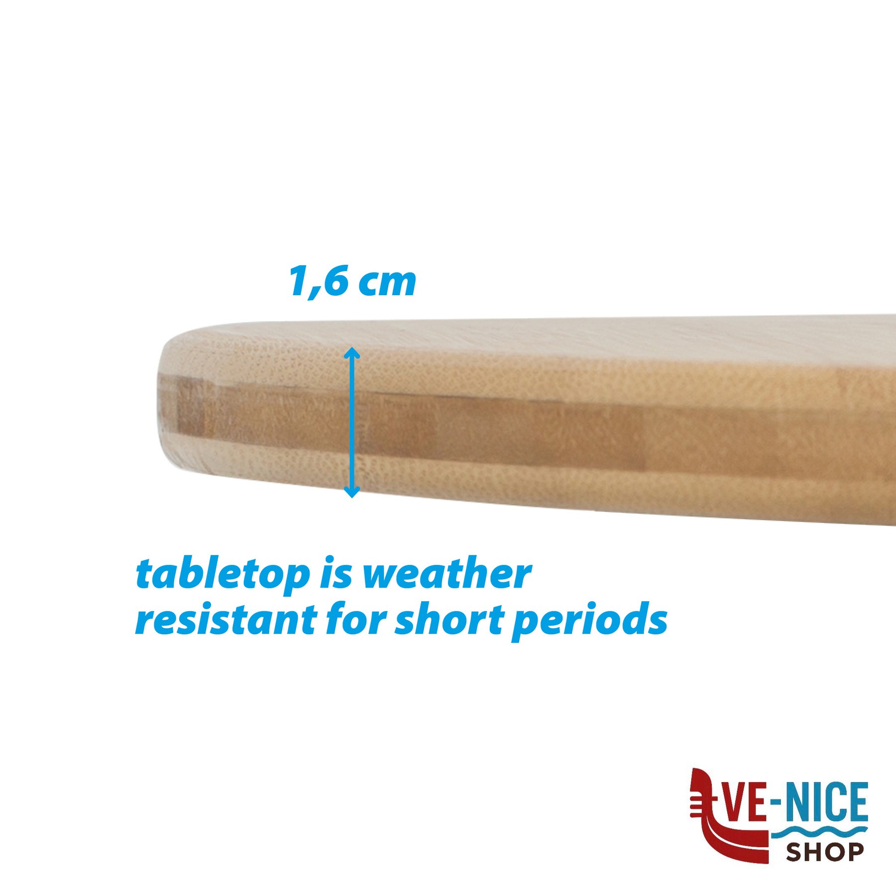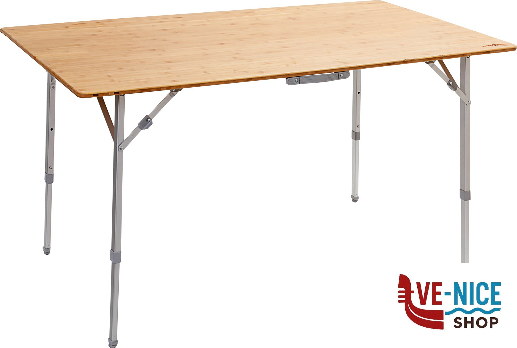 Tavolo Outdoor con struttura in metallo e ripiano in bambú.