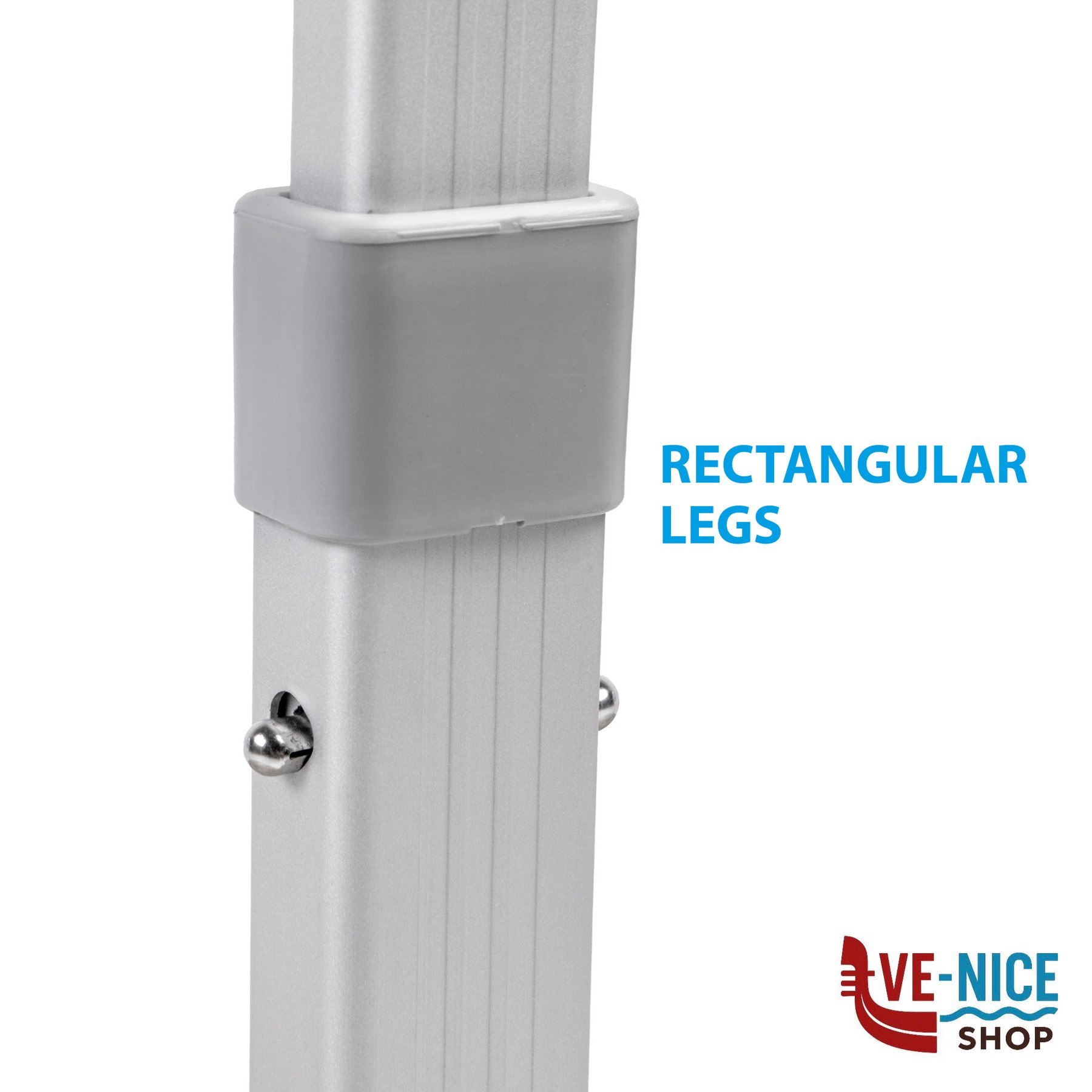 Materiale~Alluminio!!!Misure aperto~80 x 60 x H49/58/70 cm!!!Misure chiuso~80 x 60 x 4 cm!!!Peso~7 kg!!!Portata~30 kg