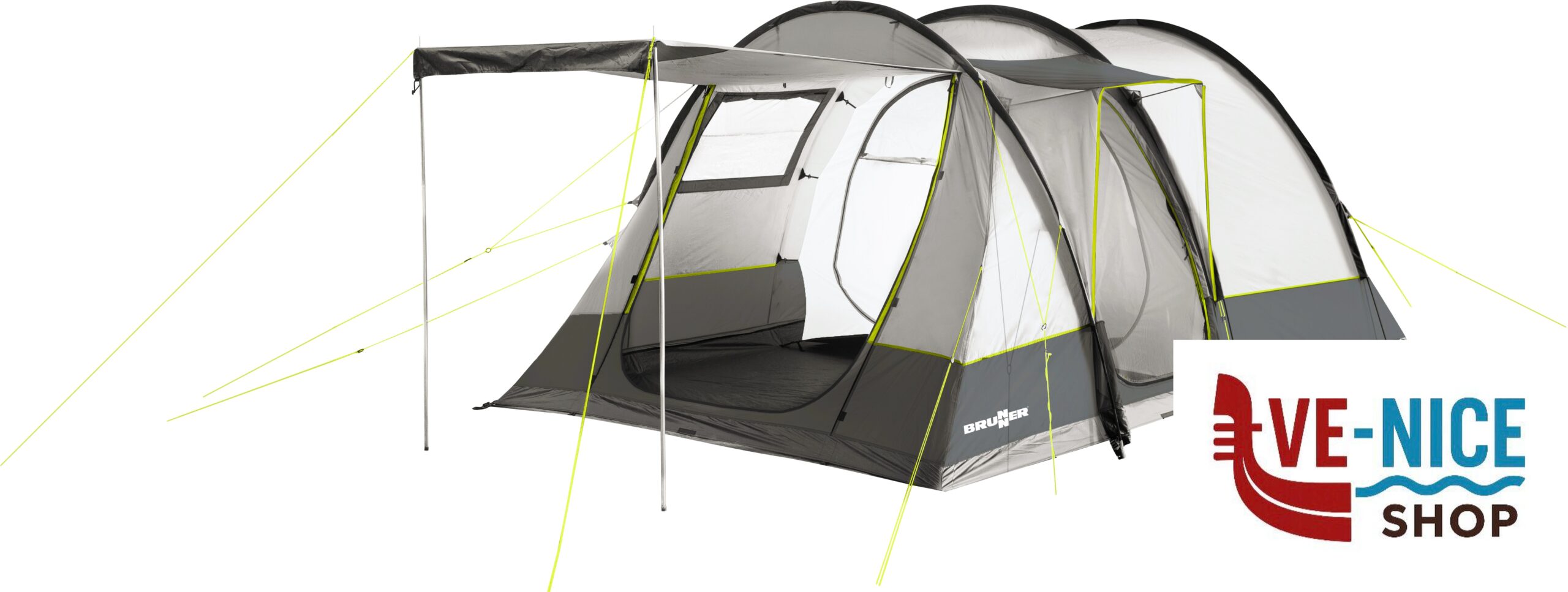 The Arqus Outdoor tunnel tent with extensive facilities, that give outdoor campers a lot of security and comfort.