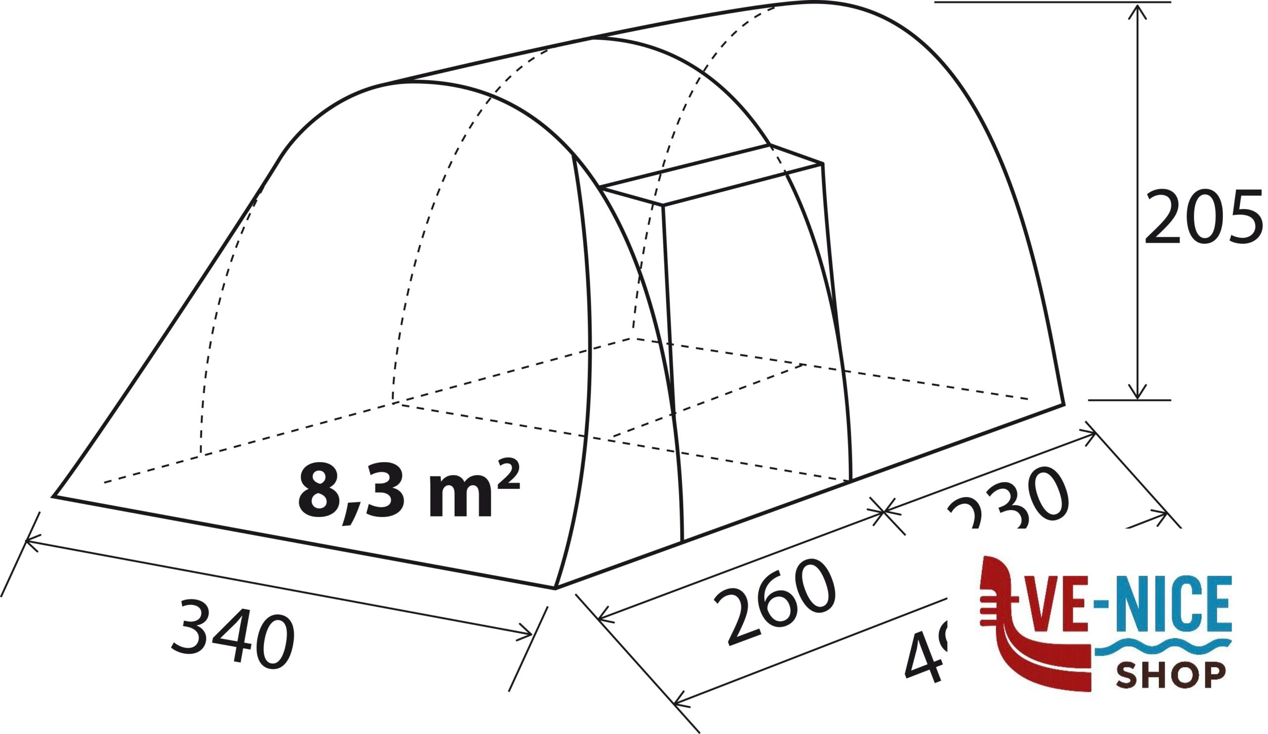Abitacolo~Breathable Polyester!!!Catino~PE!!!Custodia~72 x Ø 30 cm!!!Misure~340 x (260+230) x H205 cm!!!Misure abitacolo~(140+180) x 215 x H195 cm!!!Paleria~Fiberglass!!!Paleria esterna~Paleria esterna!!!Persone~5!!!Peso~16,5 kg!!!Sopratelo~Polyester PU 100% Polyester