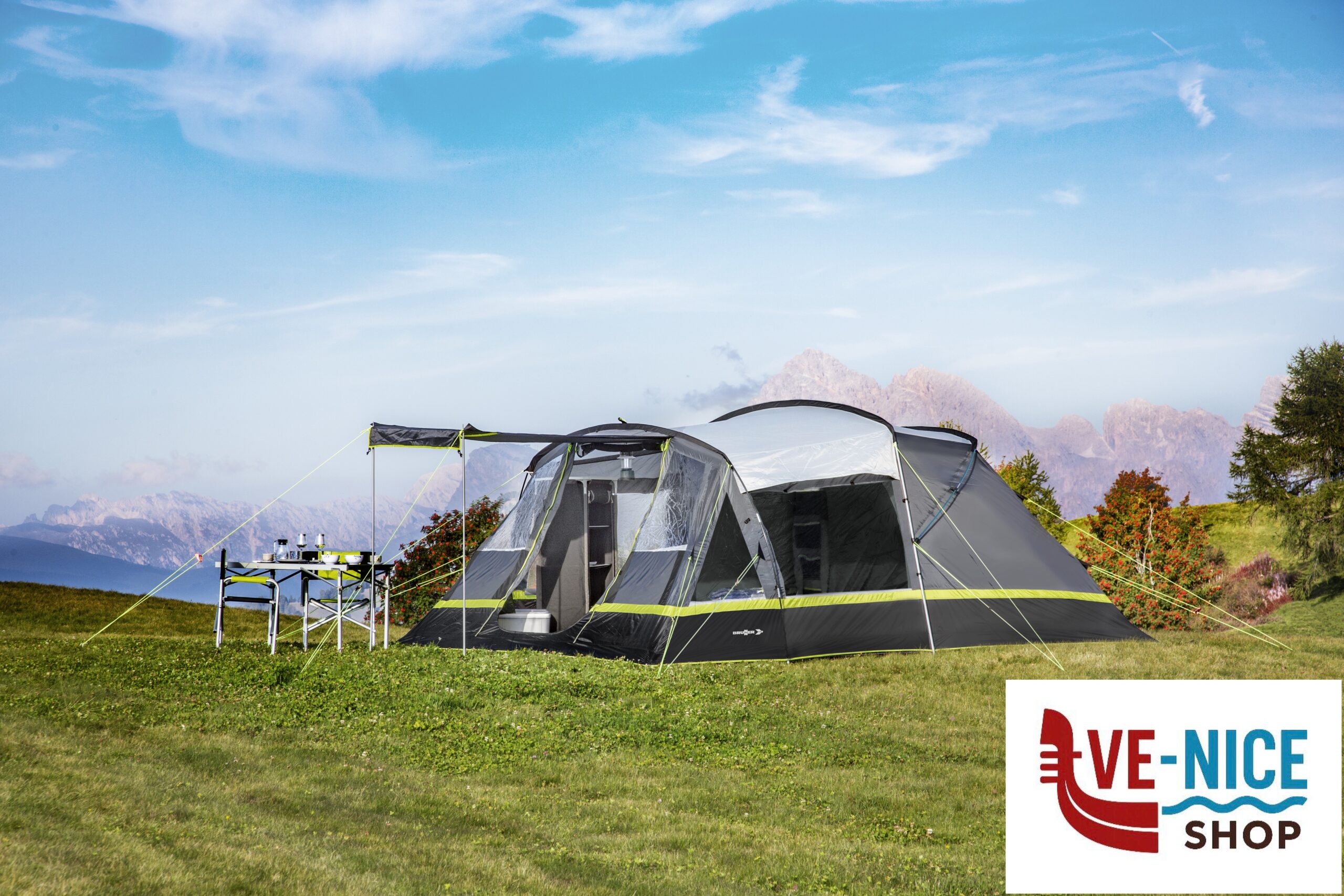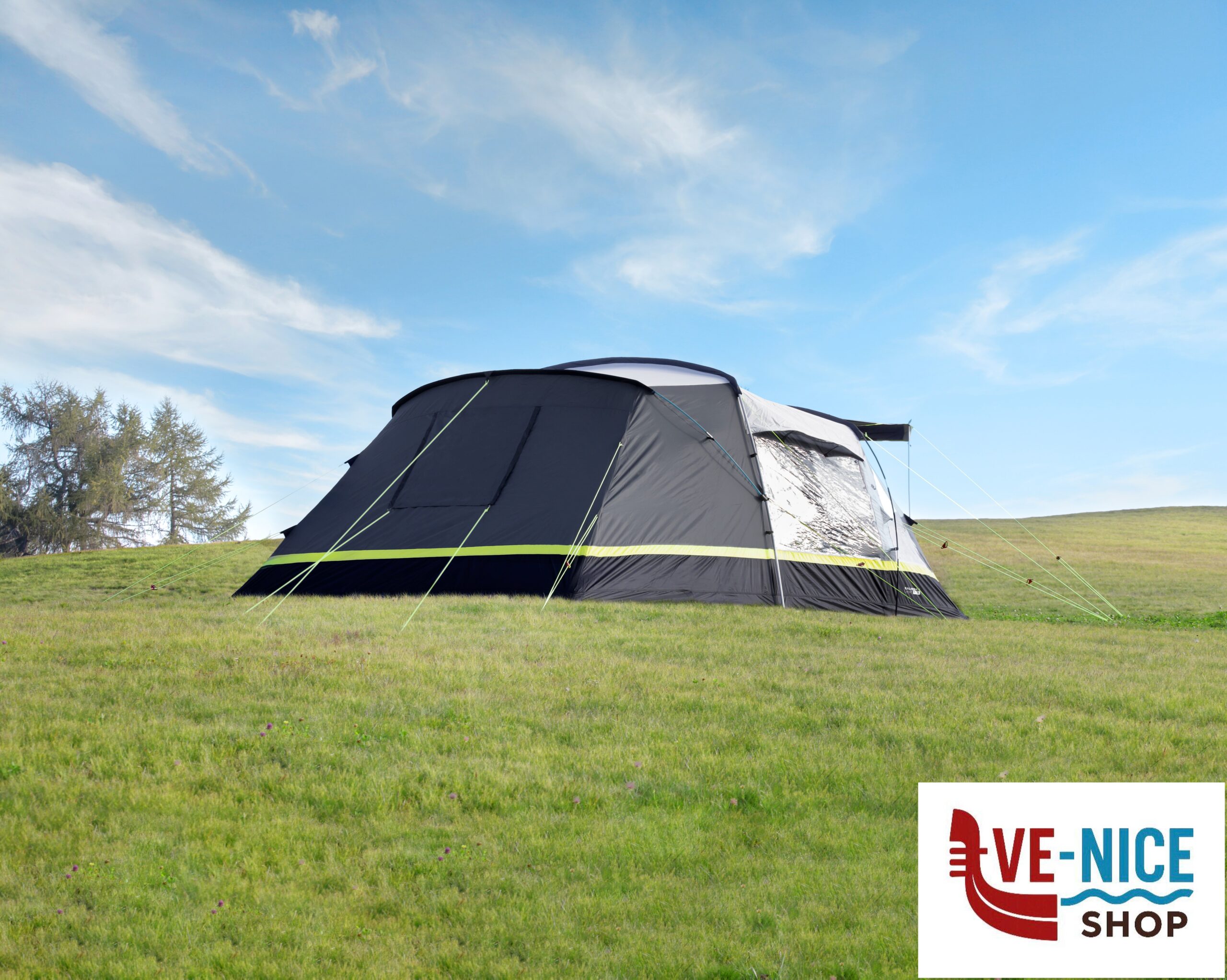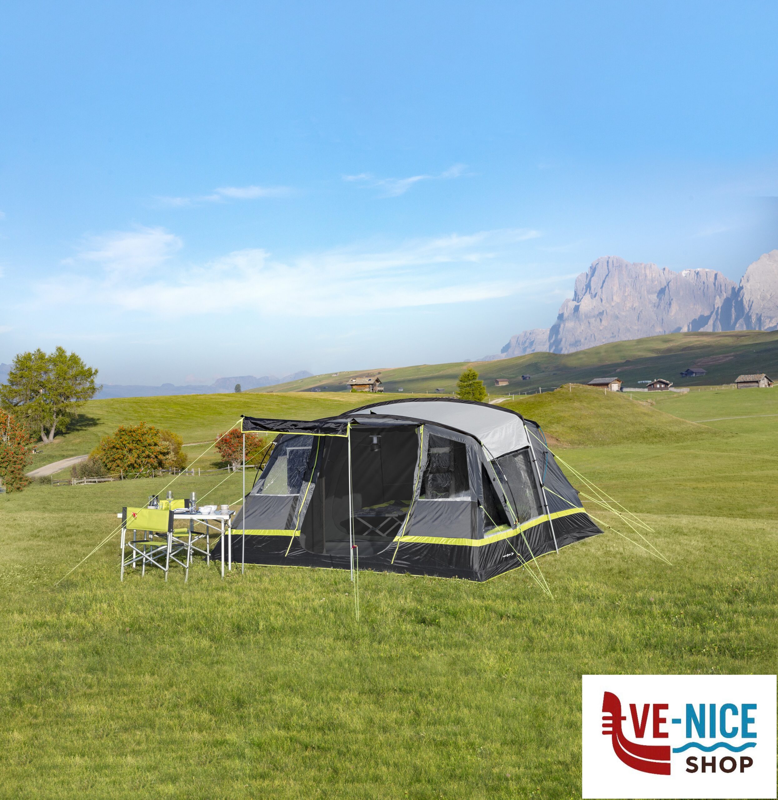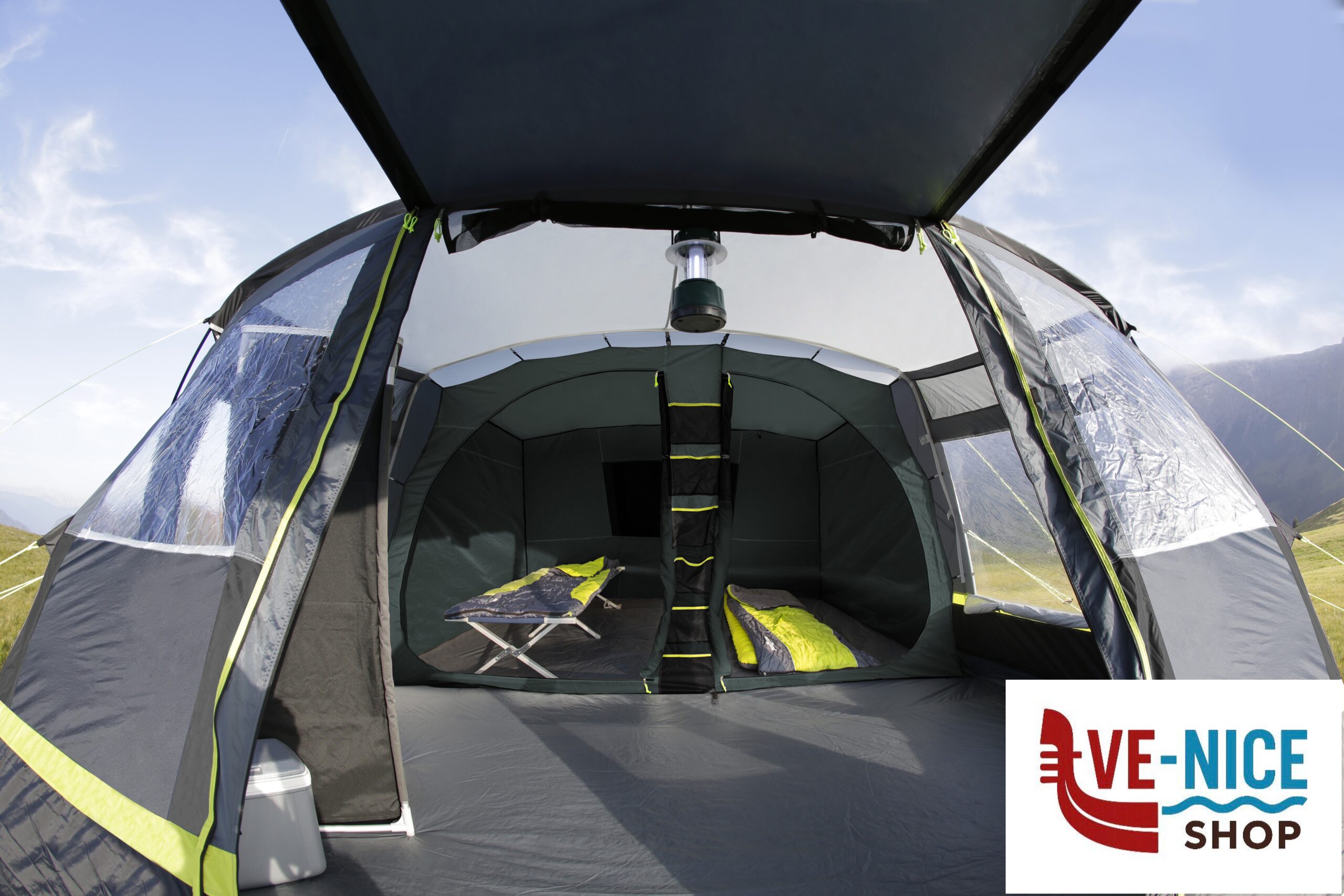 Abitacolo~Breathable Polyester!!!Catino~PE!!!Custodia~80 x Ø 30 cm!!!Misure~360 x (270+235) x H205 cm!!!Misure abitacolo~(200+140) x 220 x H195 cm!!!Paleria~Fiberglass / Acciaio!!!Paleria esterna~Paleria esterna!!!Persone~5!!!Peso~20 kg!!!Sopratelo~150D Oxford Polyester PU (100% Polyester)