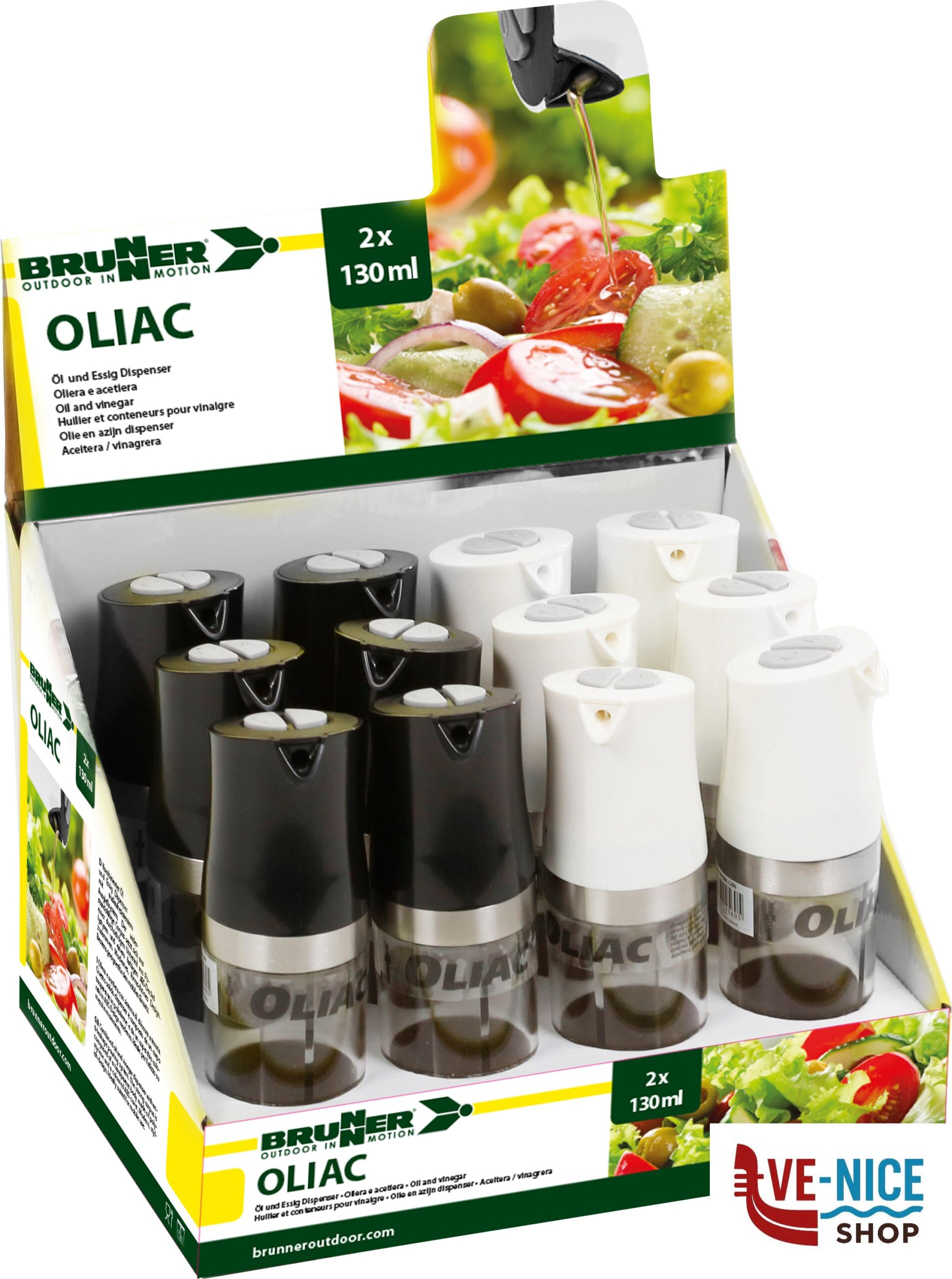 Oliera e acetiera con sistema di chiusura a tenuta.