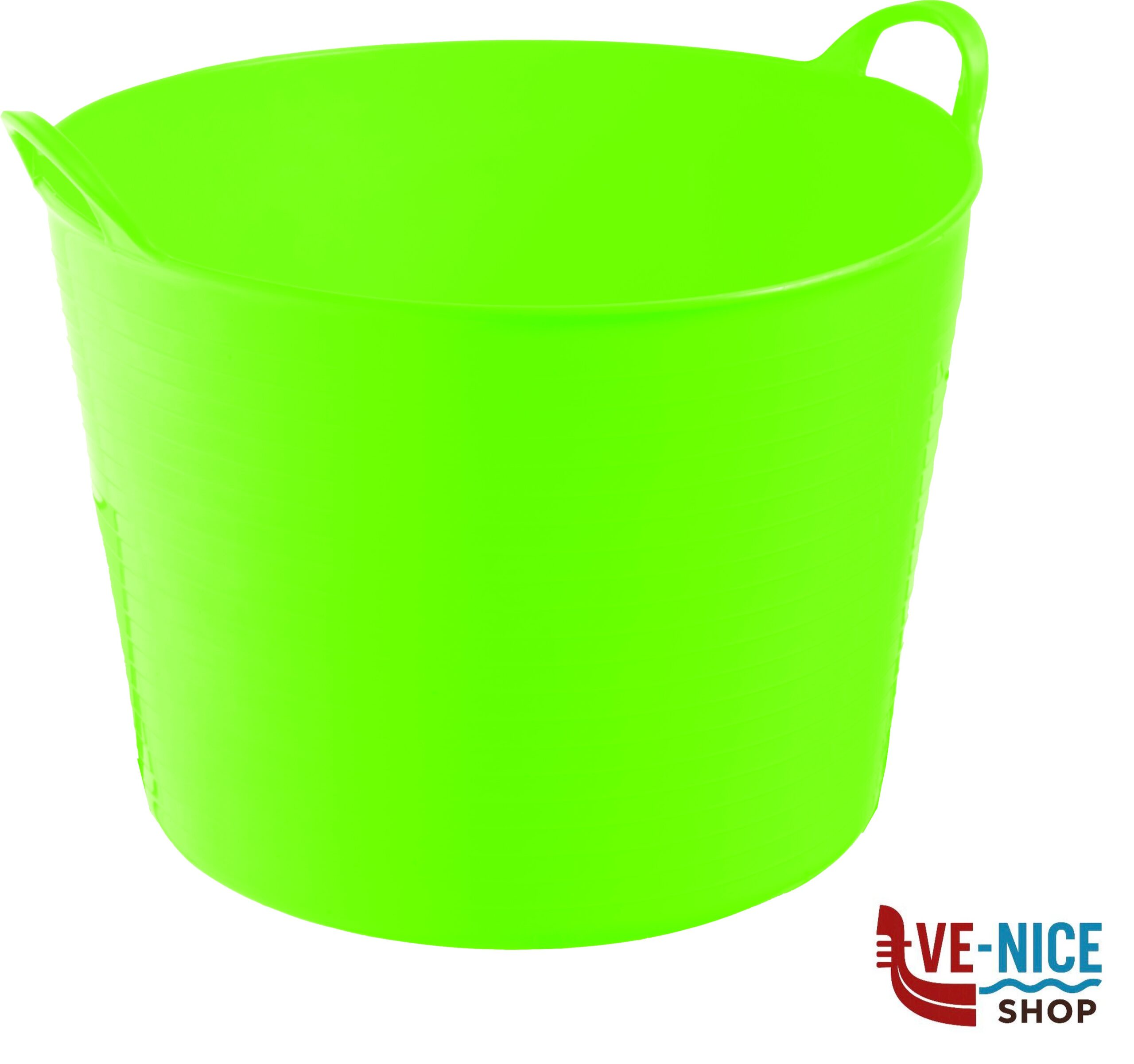 Cesto multiuso in materiale plastico flessibile e ad uso alimentare. Ideale per stoviglie, biancheria, spesa ecc. Con comode maniglie.