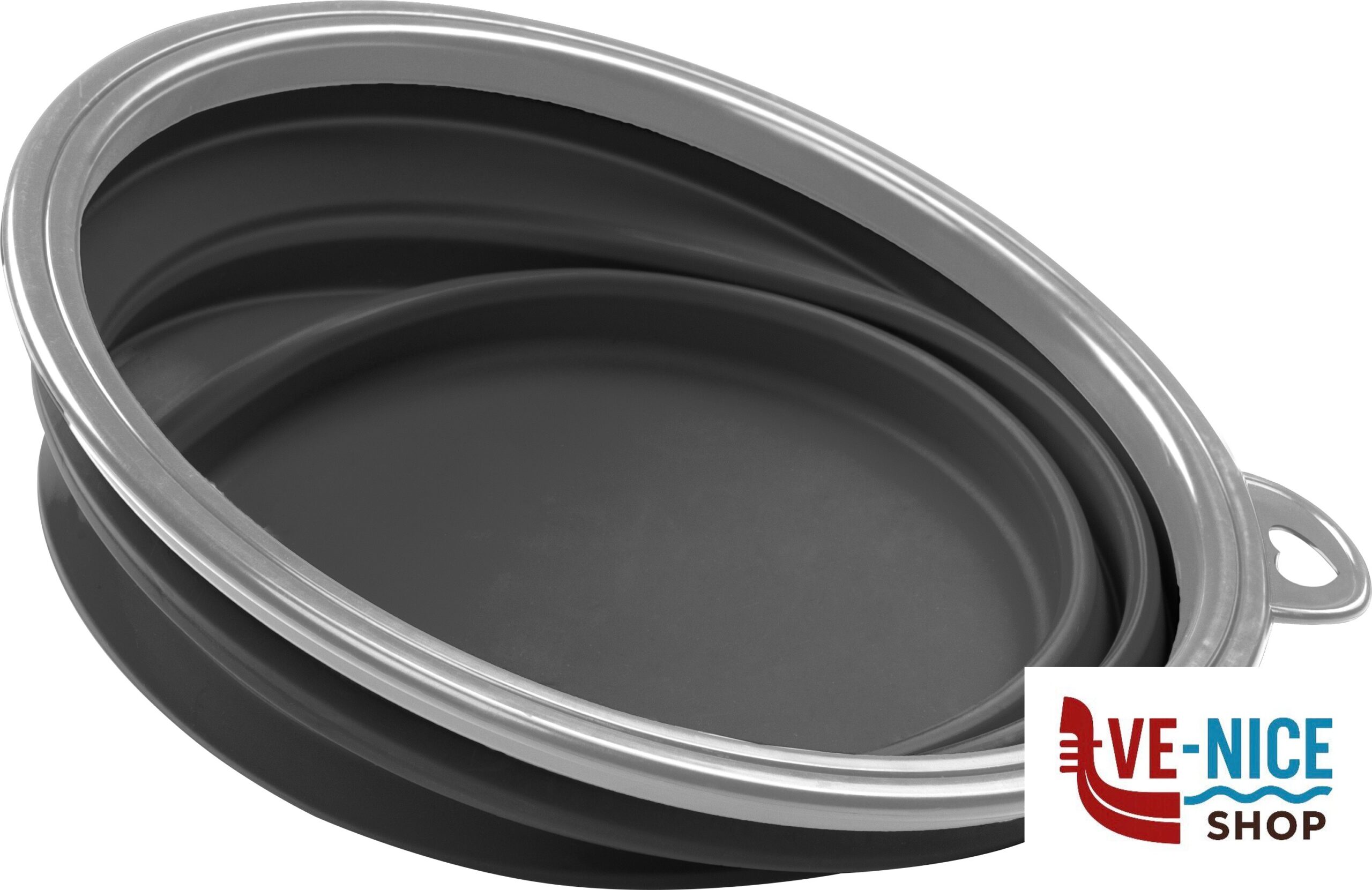 Space-saving folding bowls made of heat-resistant PP-TPR with all-round plastic rim. Compact and lightweight. Multiple uses. Food safe and dishwasher safe. Available in 3 sizes.