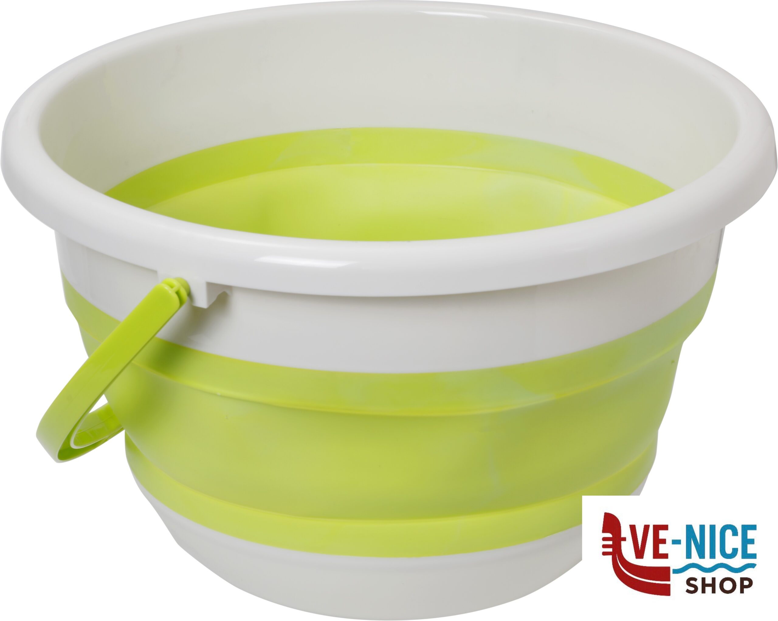 Collapsible bucket made of heat-resistant, shatter-proof and easy to clean TPE. Can be folded up to save space when not in use.