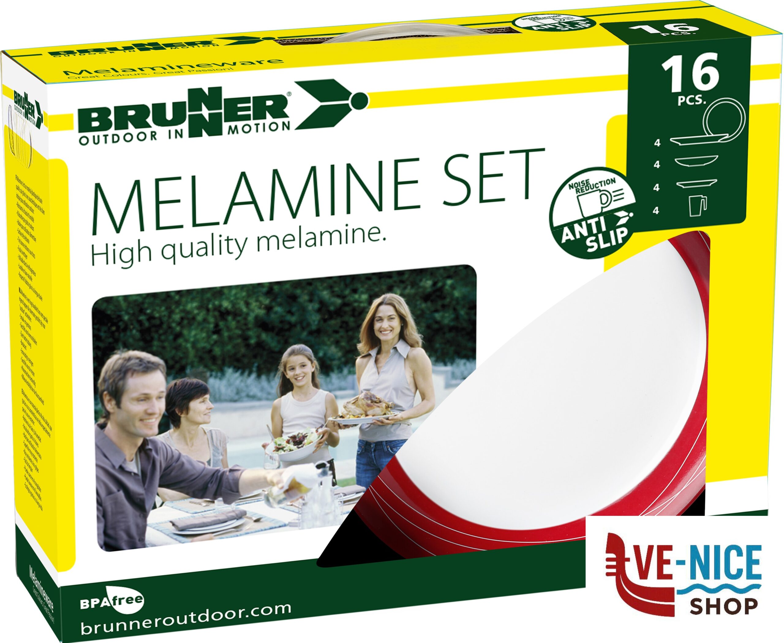 Set di stoviglie in melamina di alta qualità (16 pezzi) con design sempre di moda.