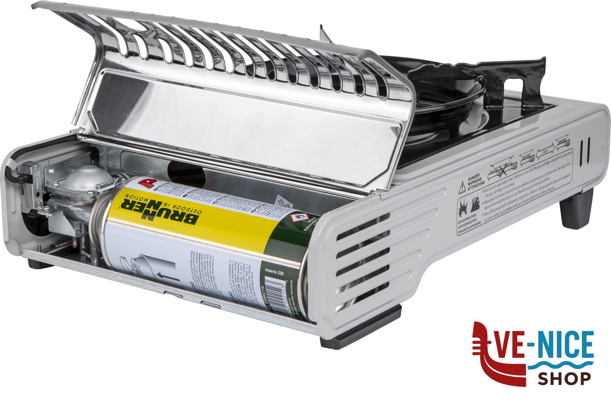 Consumo di gas~160 g/h!!!Misure~37,2 x 28,6 x H12,5 cm!!!Peso~2 kg!!!Potenza~2,2 kW