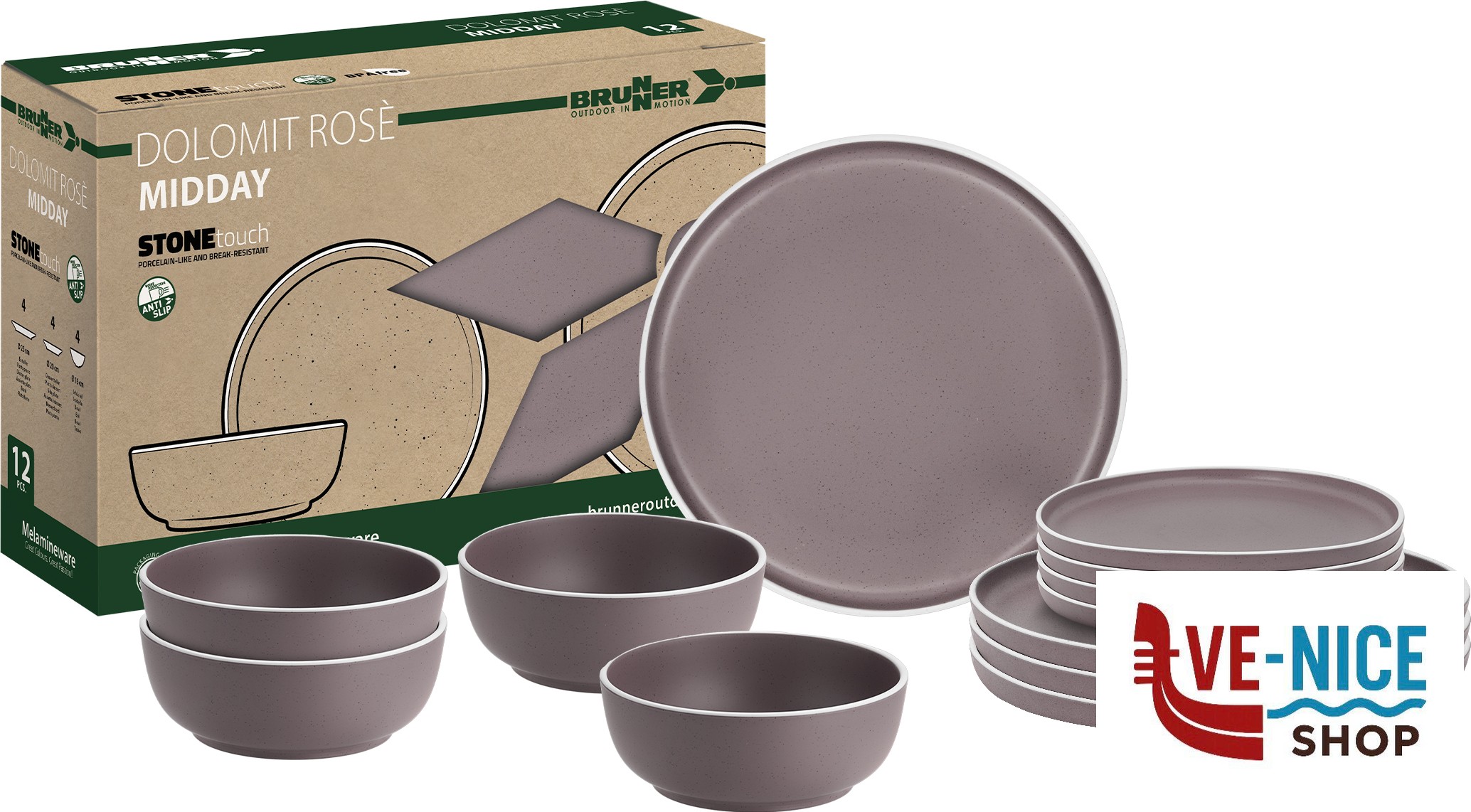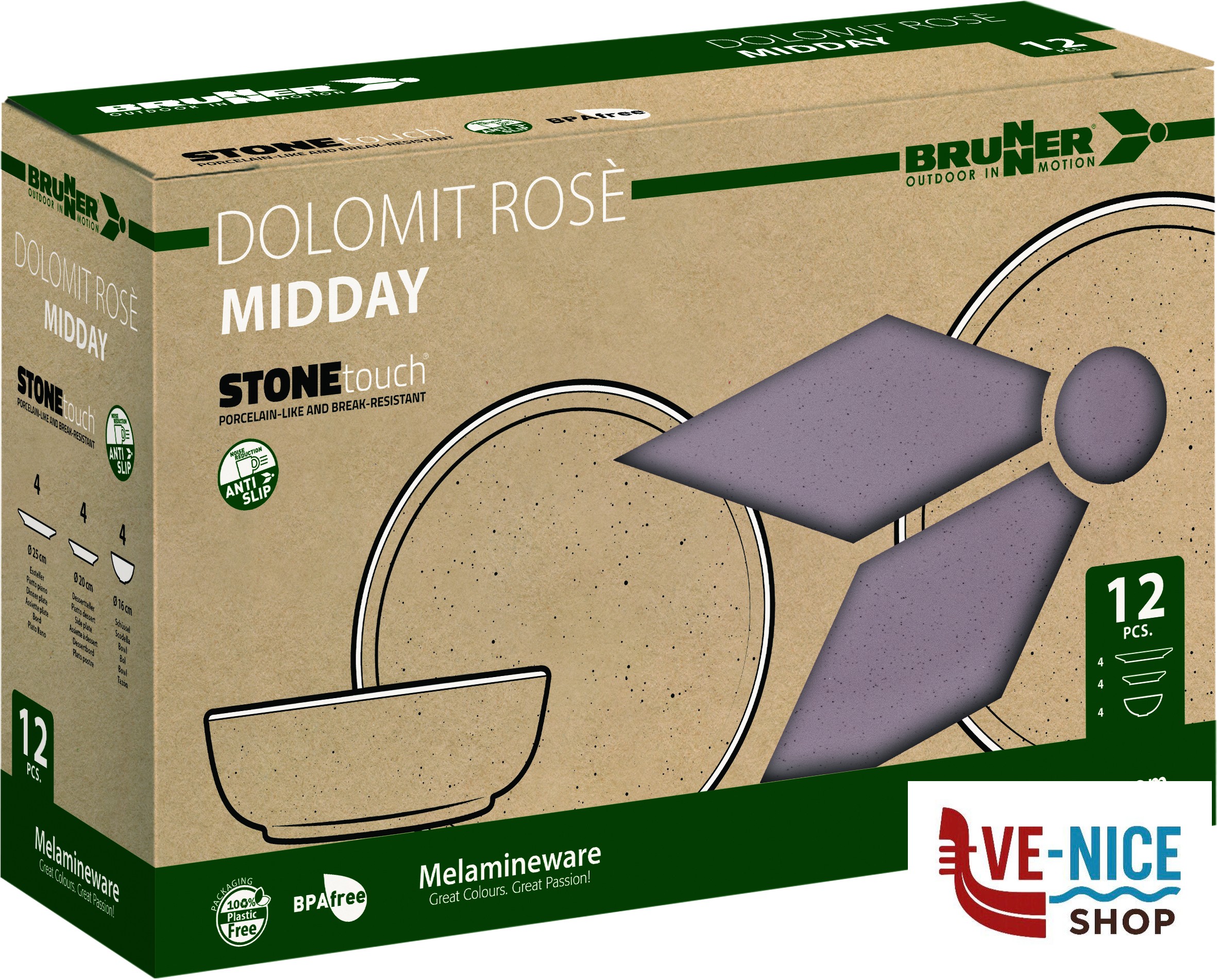Colore~C15 DOLOMIT!!!Pezzi~12!!!Piatto dessert~4 x Ø 20 cm!!!Piatto piano~4 x Ø 25 cm!!!Scodella~4 x Ø 16 cm