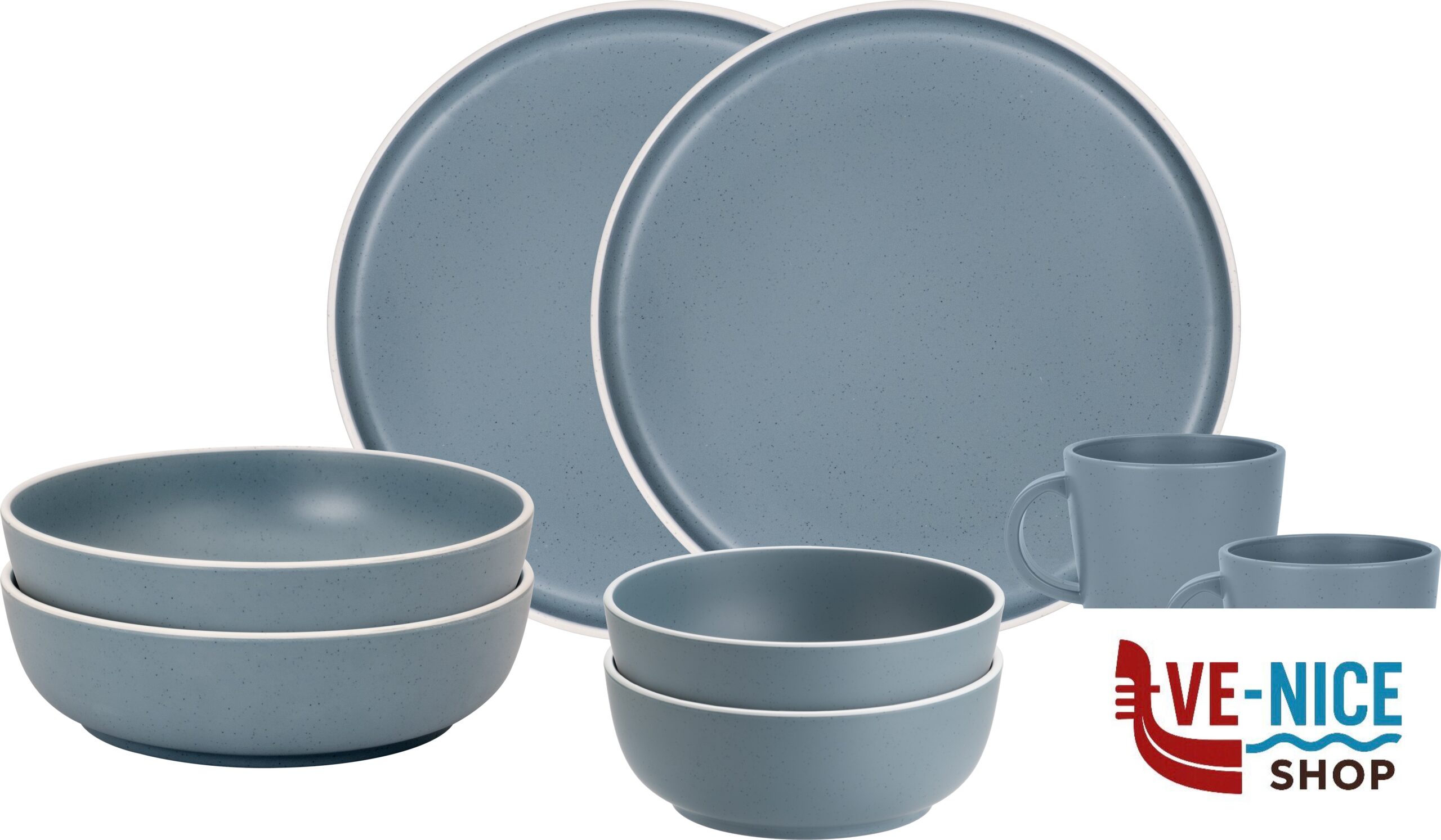 Pezzi~8!!!Piatto fondo~2 x Ø 20 cm!!!Piatto piano~2 x Ø 25 cm!!!Scodella~2 x Ø 16 cm!!!Tazza~2 x 30 cl – Ø 9 x H10 cm