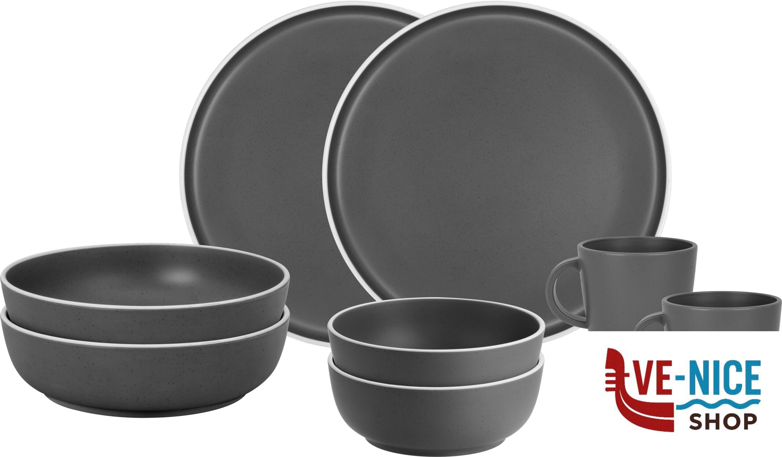 Pezzi~8!!!Piatto fondo~2 x Ø 20 cm!!!Piatto piano~2 x Ø 25 cm!!!Scodella~2 x Ø 16 cm!!!Tazza~2 x 30 cl – Ø 9 x H10 cm