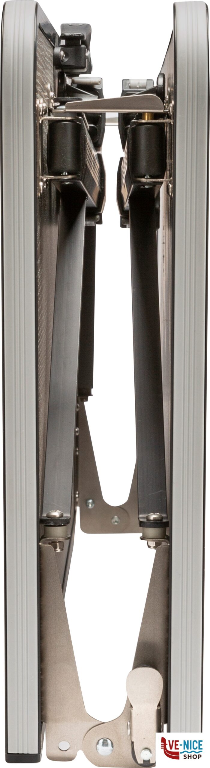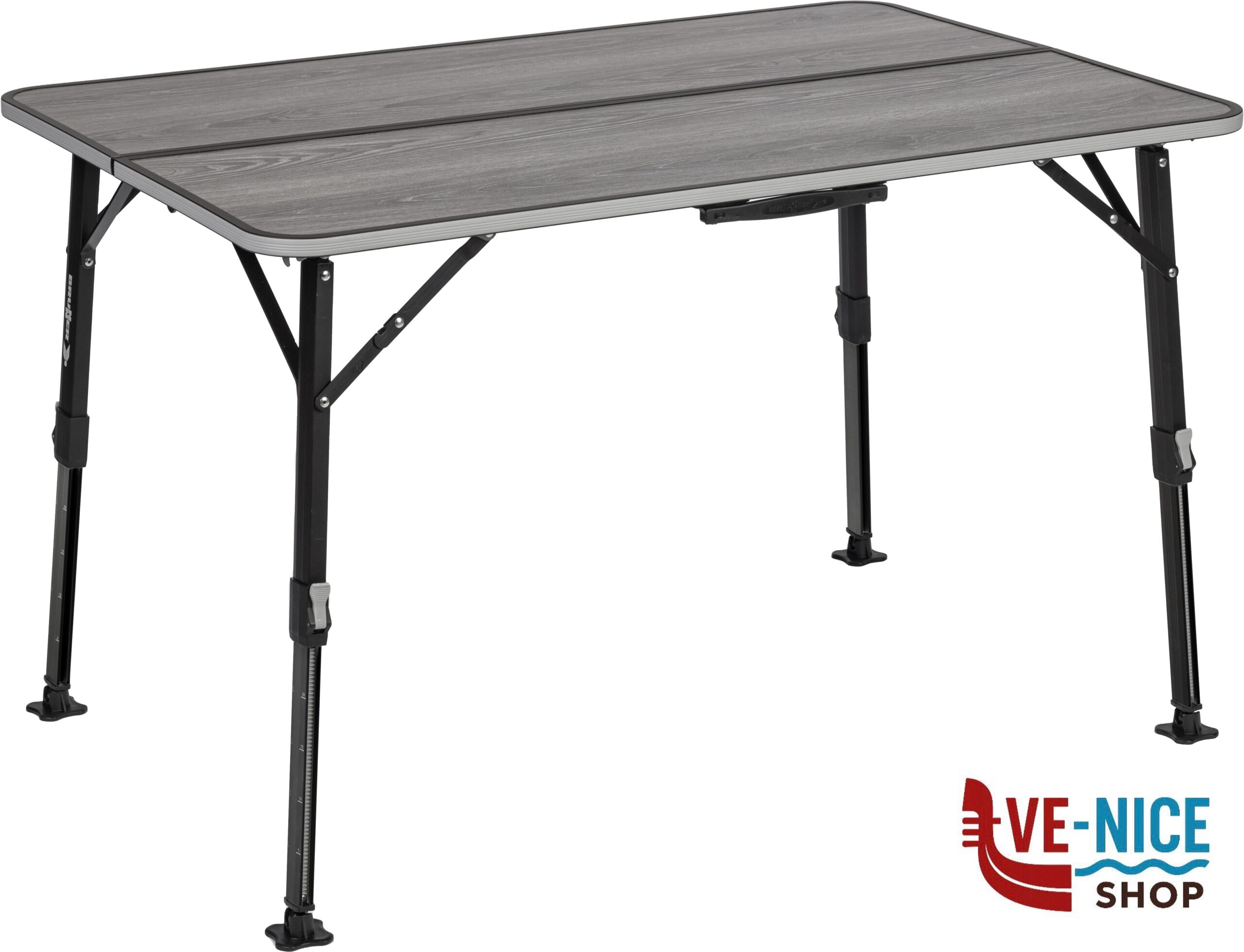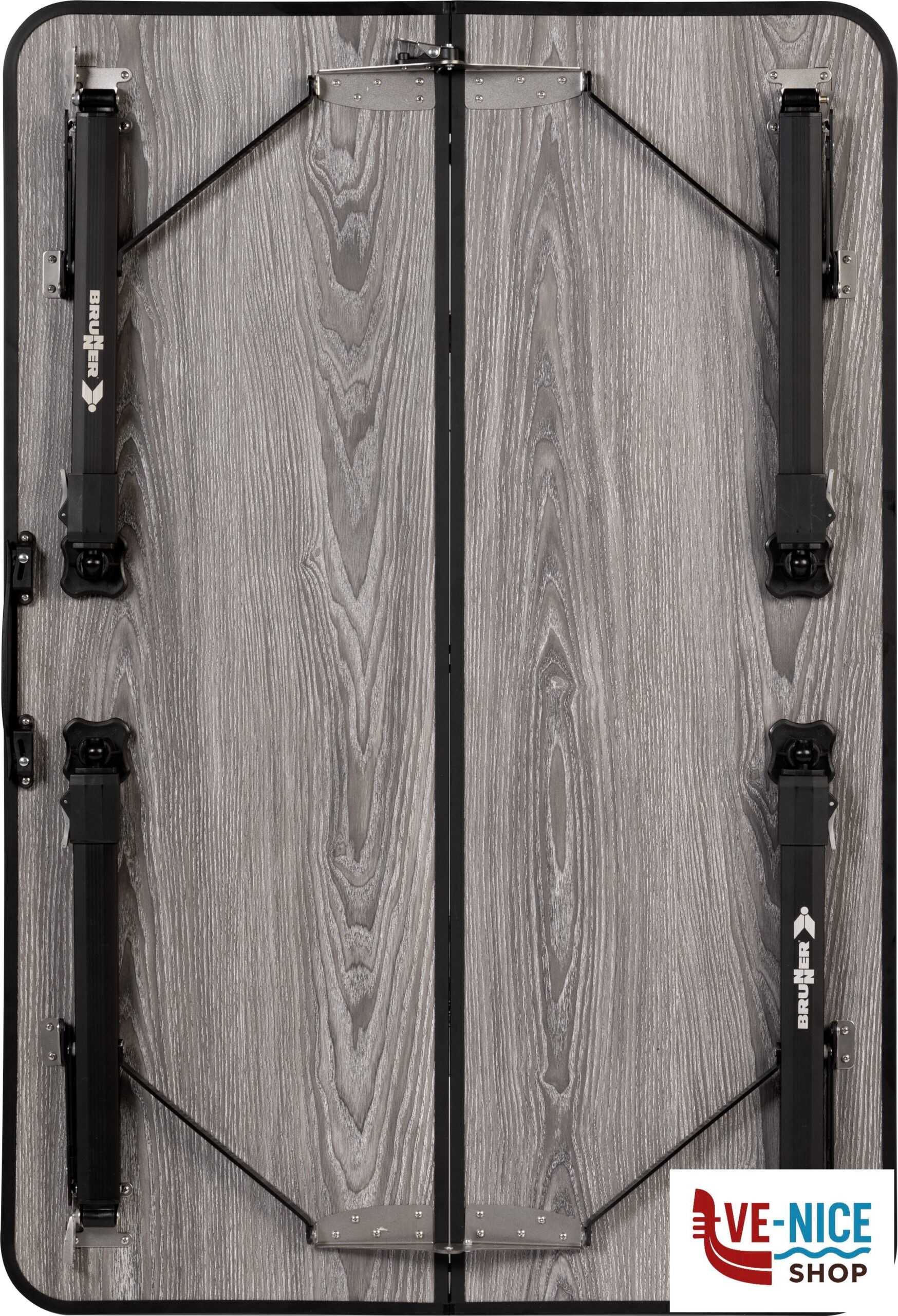 Very sturdy, ultralight table with folding top and functional aluminum frame. Special design, space-saving folding table top, and height-adjustable increases legroom on all 4 sides. The multi-layer weather-resistant table top features a unique design and a special honeycomb structure with reinforced edges. With carrying handle.