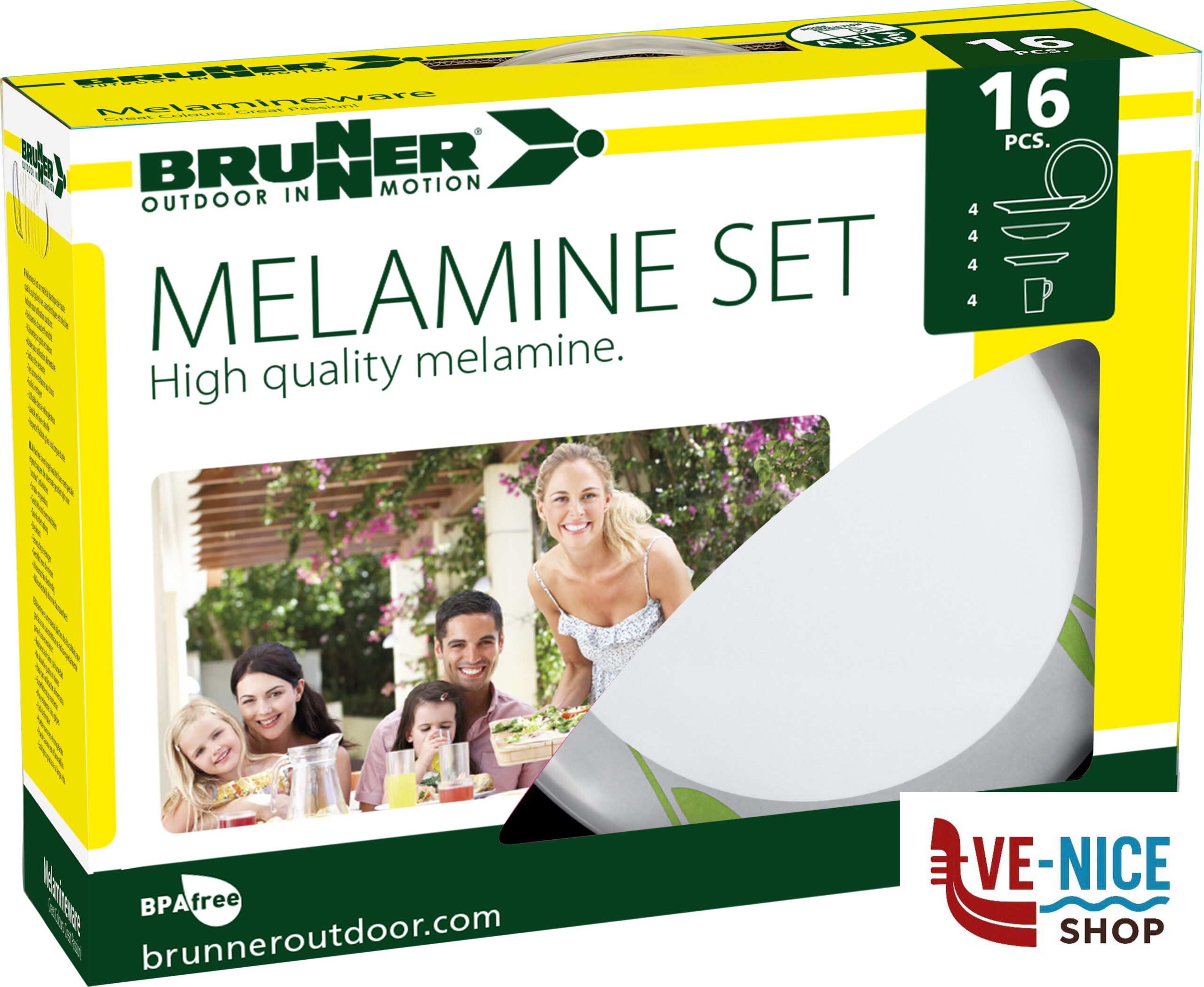 Set di stoviglie in melamina di alta qualità (16 pezzi) con design sempre di moda.