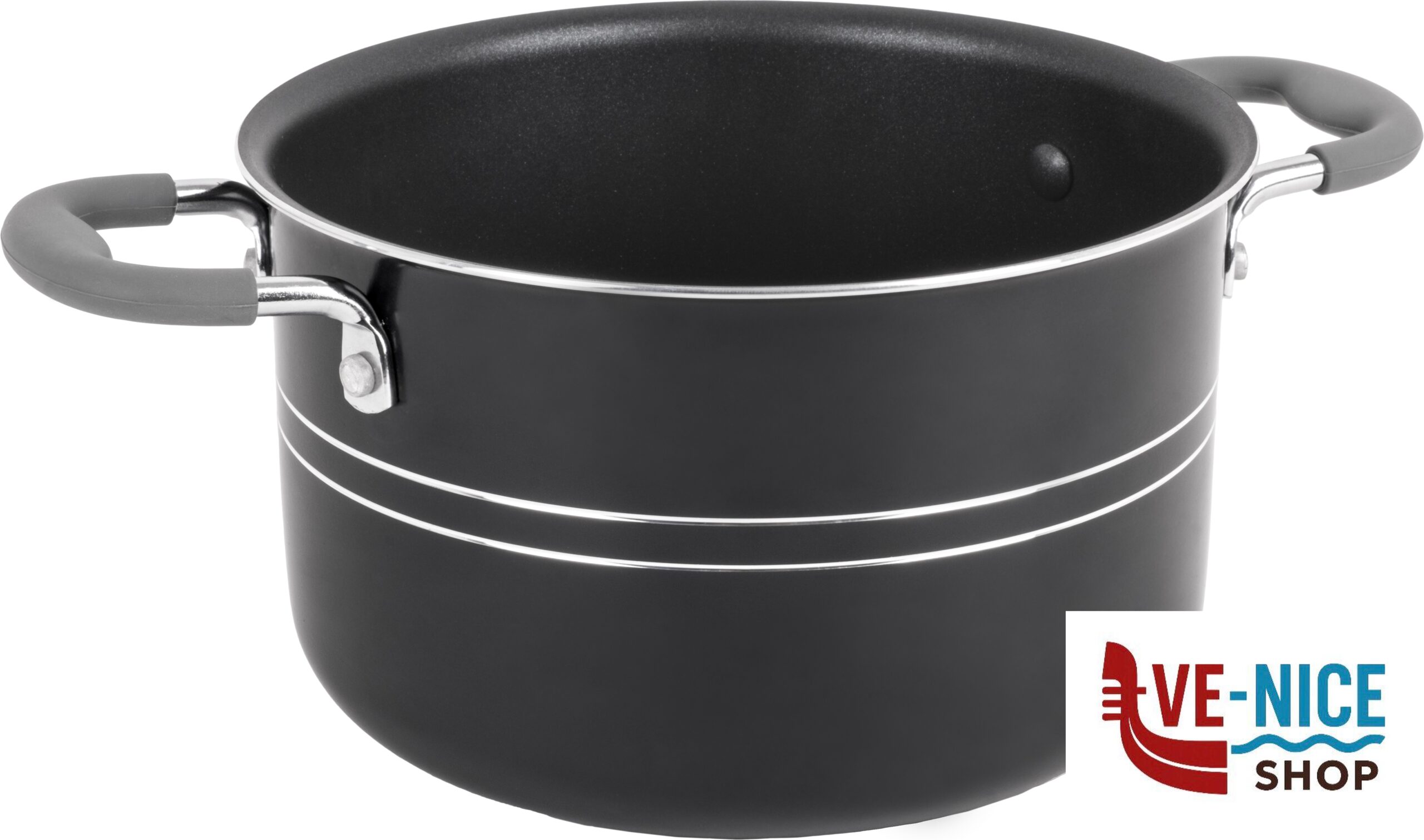 Crafted from durable aluminium and boasting an innovative antistick coating, this versatile pot set is the perfect companion for your culinary adventures. Its stackable design saves precious storage space, while the clever composition allows for endless cooking possibilities. Silicon handles.
