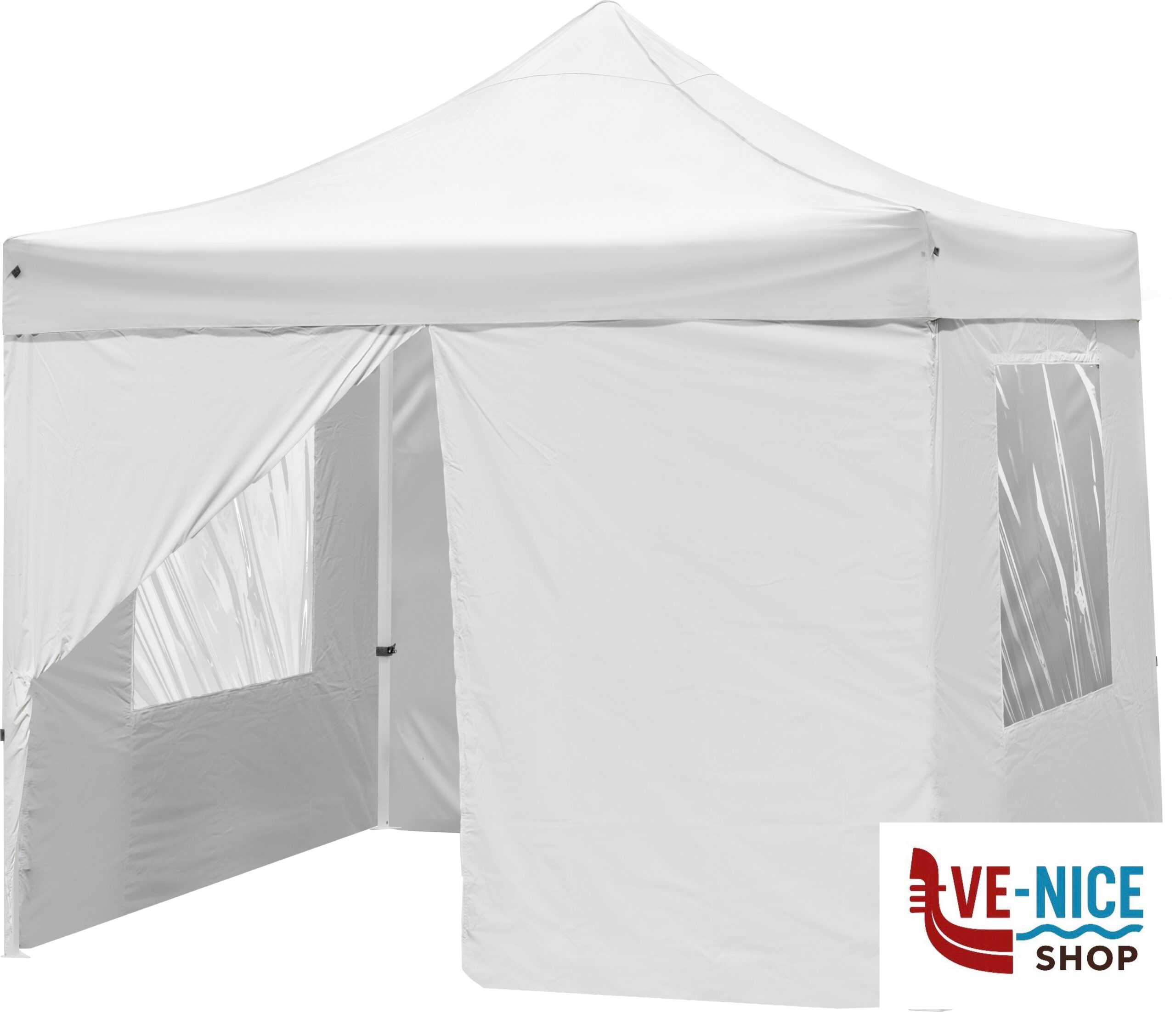 Le pareti laterali completano ogni gazebo pieghevole e lo rendono resistente alle intemperie e al vento. Tutte le pareti laterali vengono semplicemente fissate all’interno del bordo del gazebo tramite nastro premi e strappa già predisposto e collegabili mediante l’ausilio di cerniere. Nella fornitura è compresa una borsa custodia.