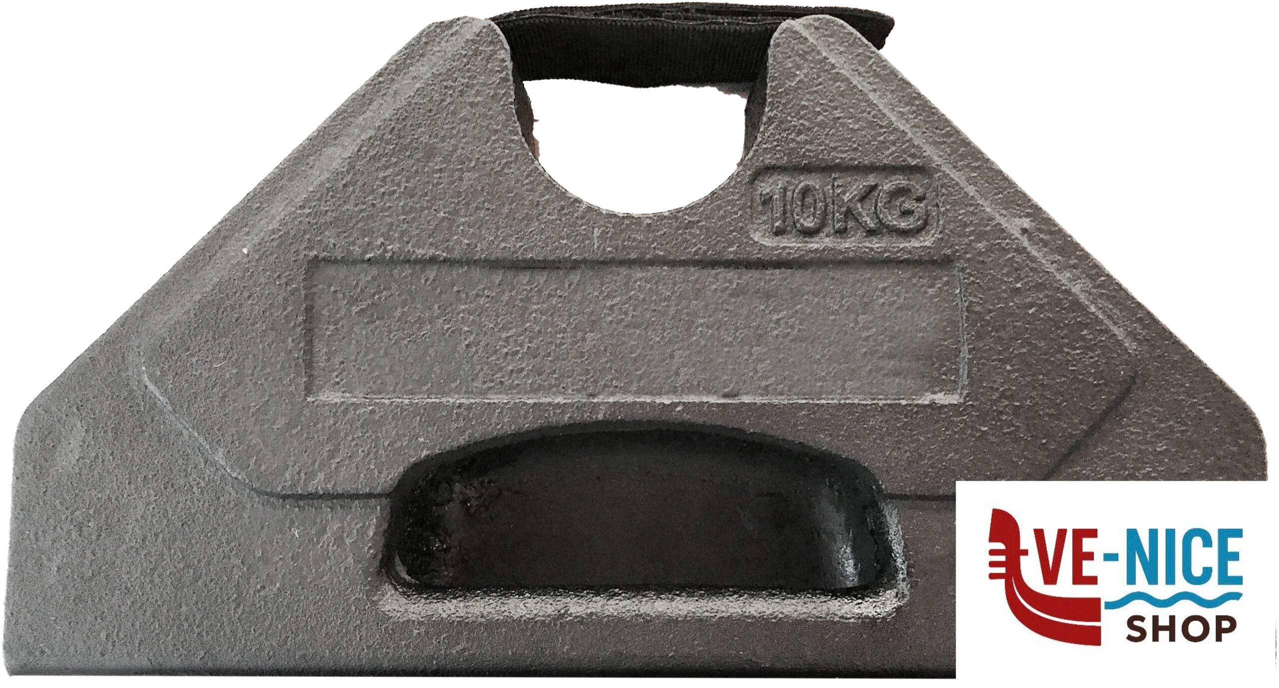 Zavorra in ghisa per la stabilizzazione delle singole gambe dei gazebi. Con cinghia di fissaggio. Adatto per profili fino a 40×40 mm.