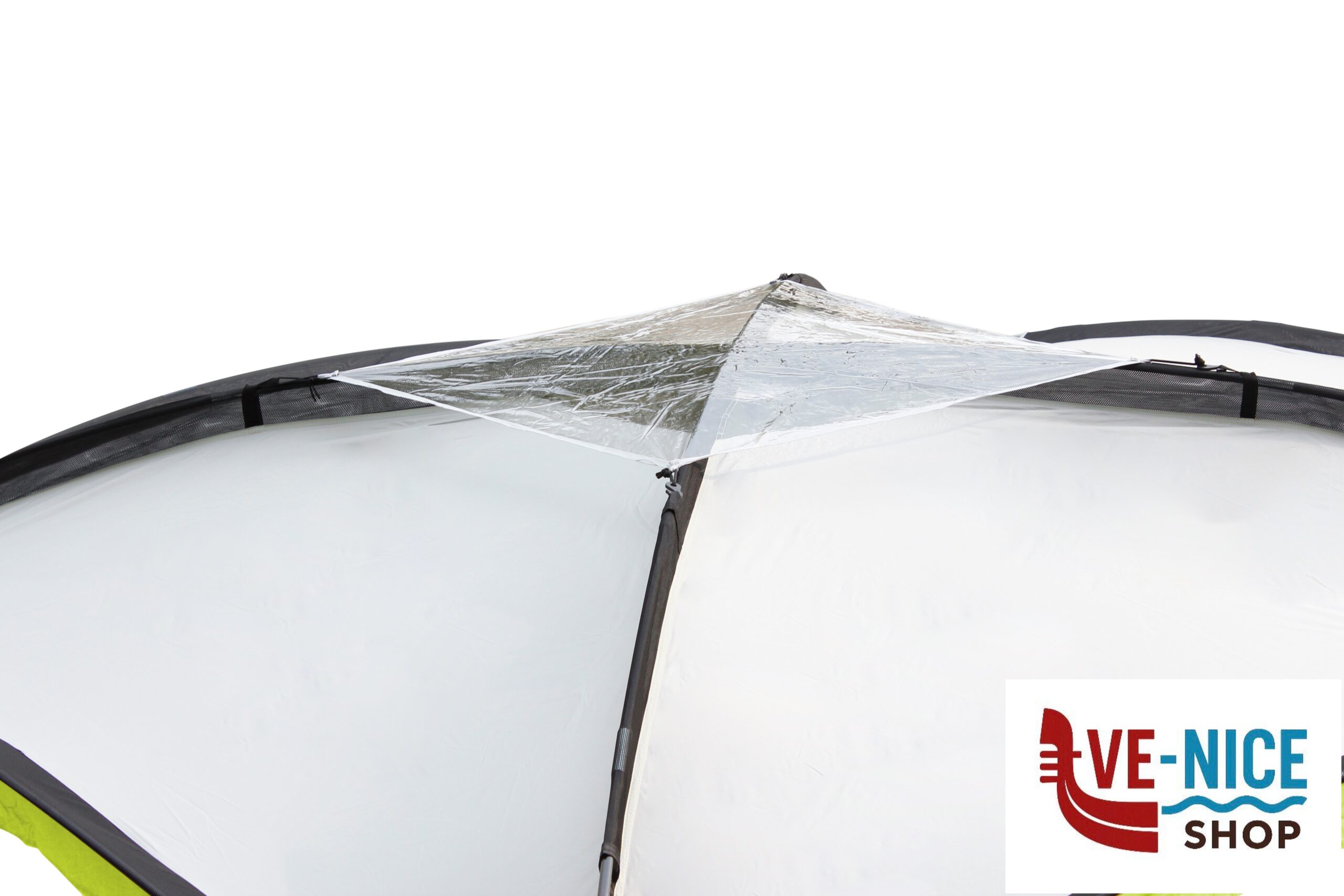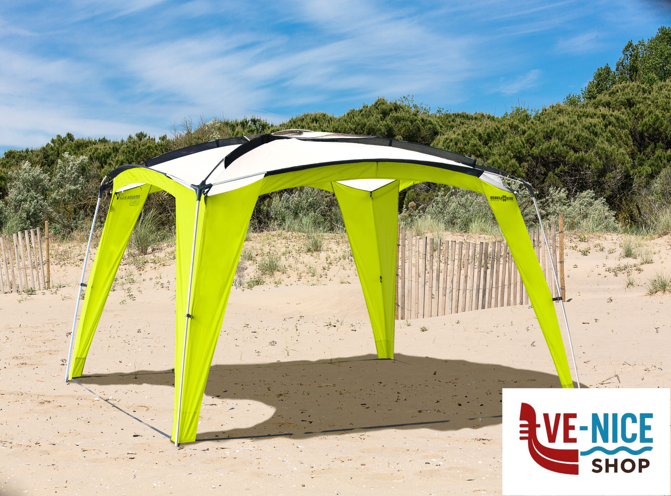 Gazebo per outdoor con paleria esterna in acciaio e fibra di vetro. Montaggio semplice e veloce. Peso ridotto. Completo di due pareti laterali staccabili.