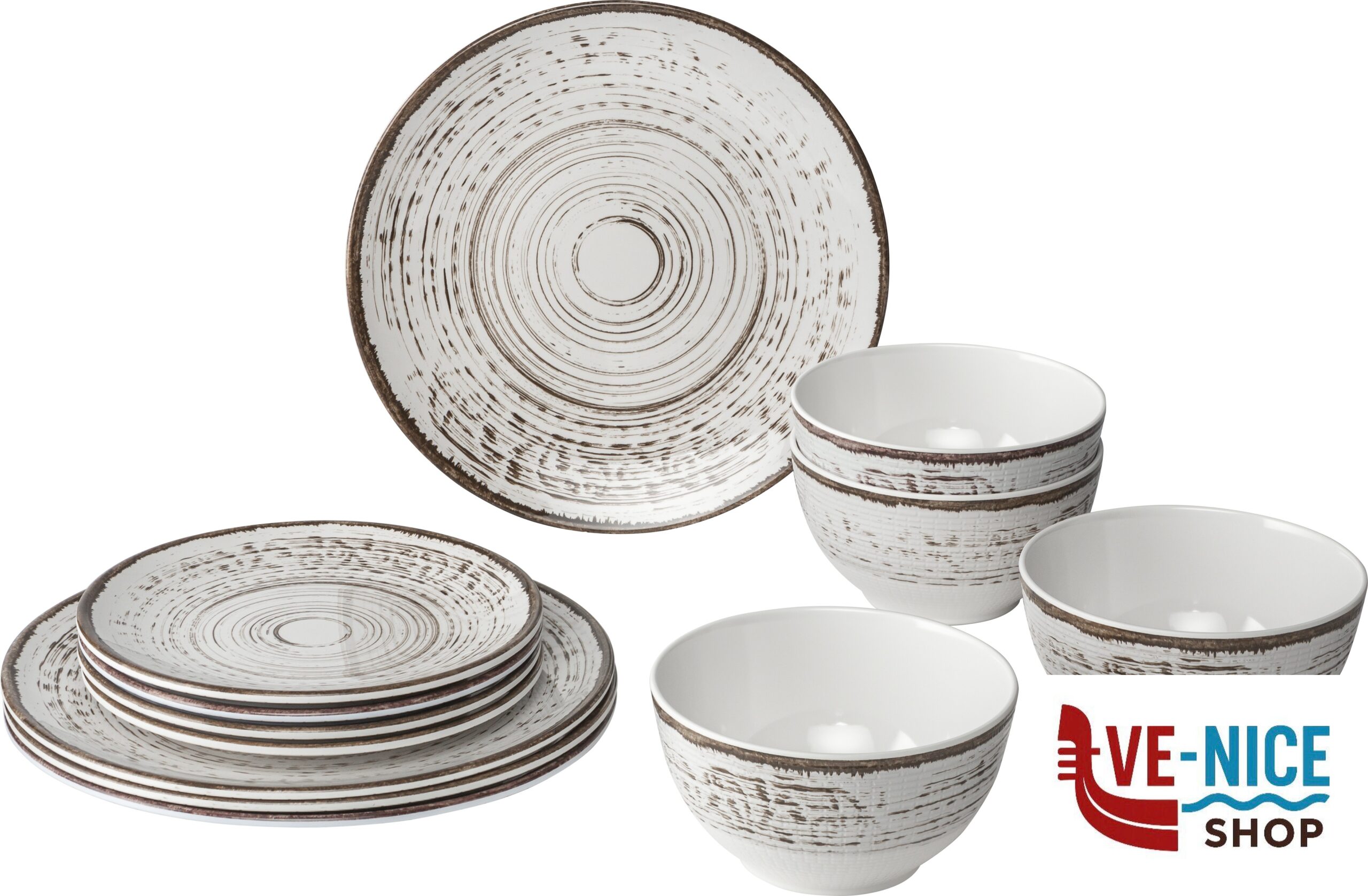 Pezzi~12!!!Piatto dessert~4 x Ø 20 cm!!!Piatto piano~4 x Ø 25 cm!!!Scodella~4 x Ø 15 cm