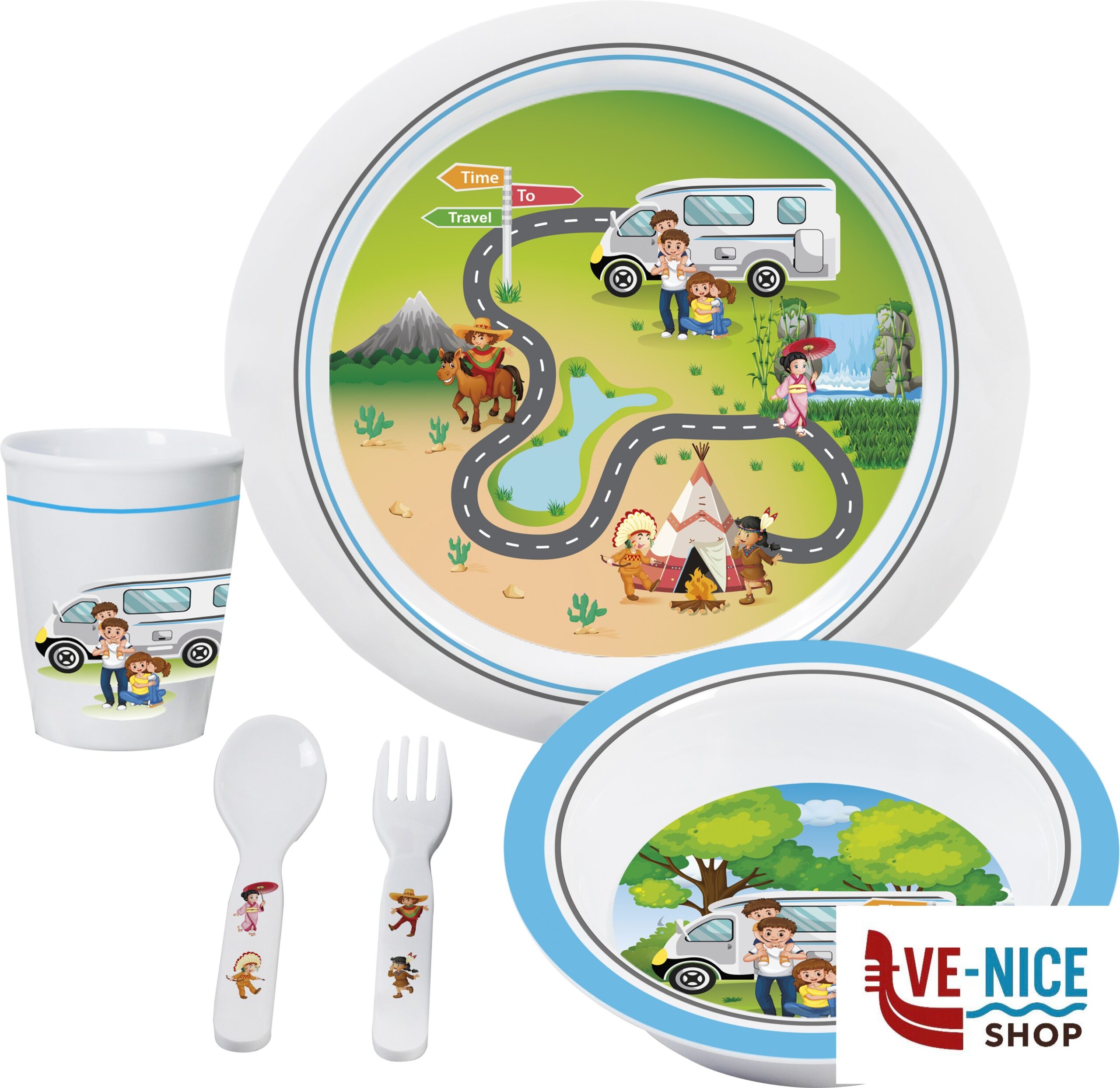 Bicchiere~1x 20 cl!!!Pezzi~5!!!Piatto piano~1x Ø 22 cm!!!Posate bimbo~2 pcs!!!Scodella~1x Ø 16 cm