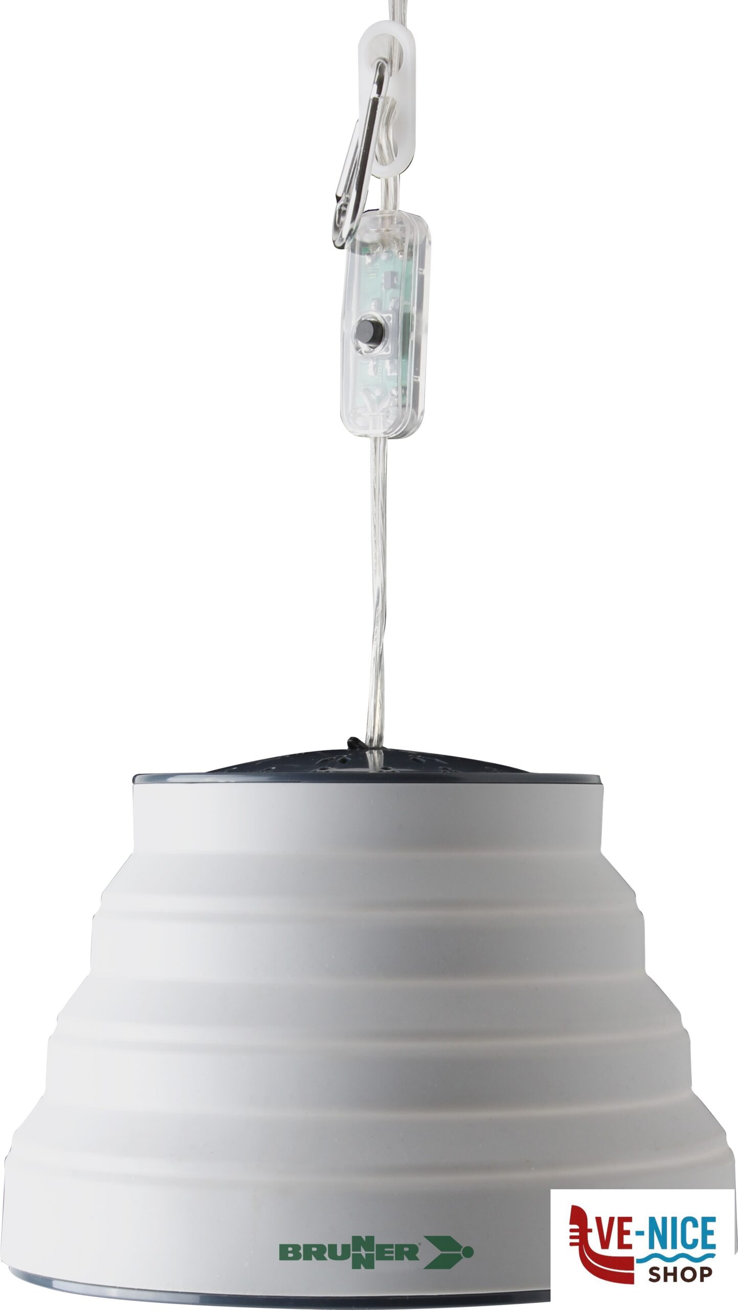 Mains powered LED tent and awning light with collapsible silicone screen (Fold-Away System).