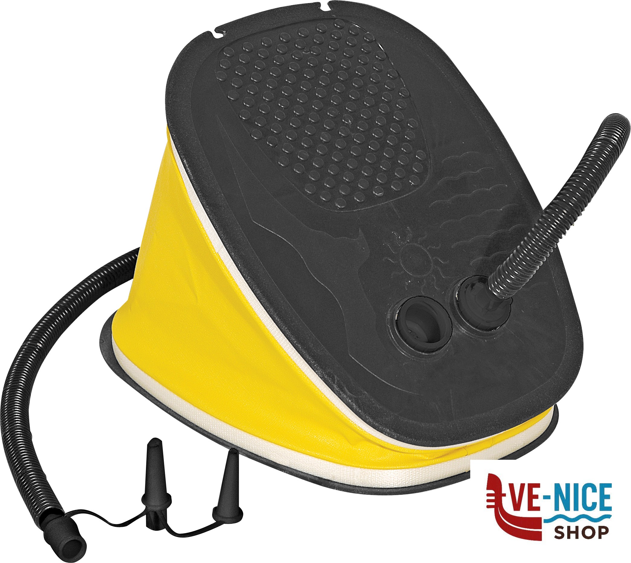 Gonfiatore a mantice con robuste basi antisdrucciolo in materiale plastico. Completo di adattatori. Sono disponibili due misure.